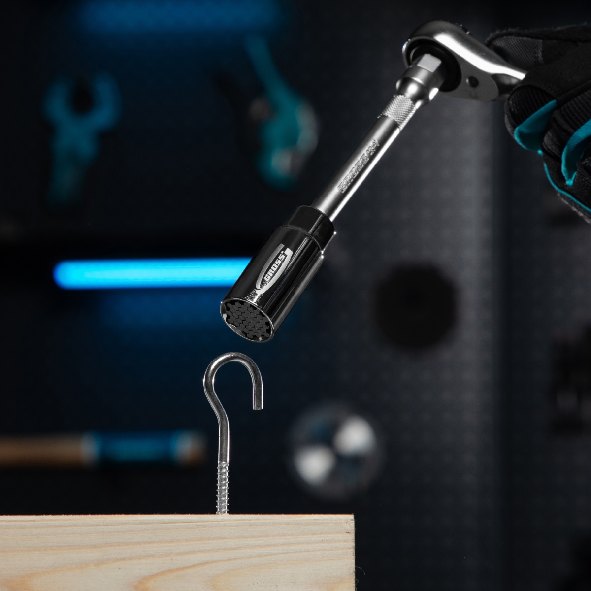 Наличие клапана для сброса давления Головка торцевая многоразмерная, CrV, 6-21 мм, под квадрат 3/8, CrV, хромированная Gross