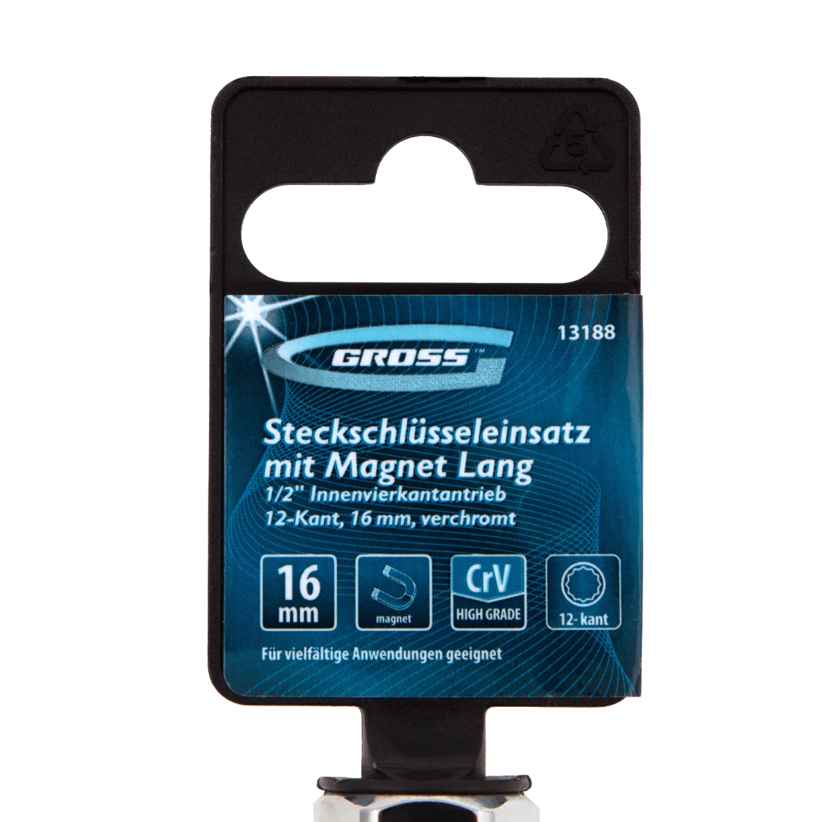 Головка торцевая свечная, магнитная, двенадцатигранная, 16 мм, под квадрат 1/2 Gross