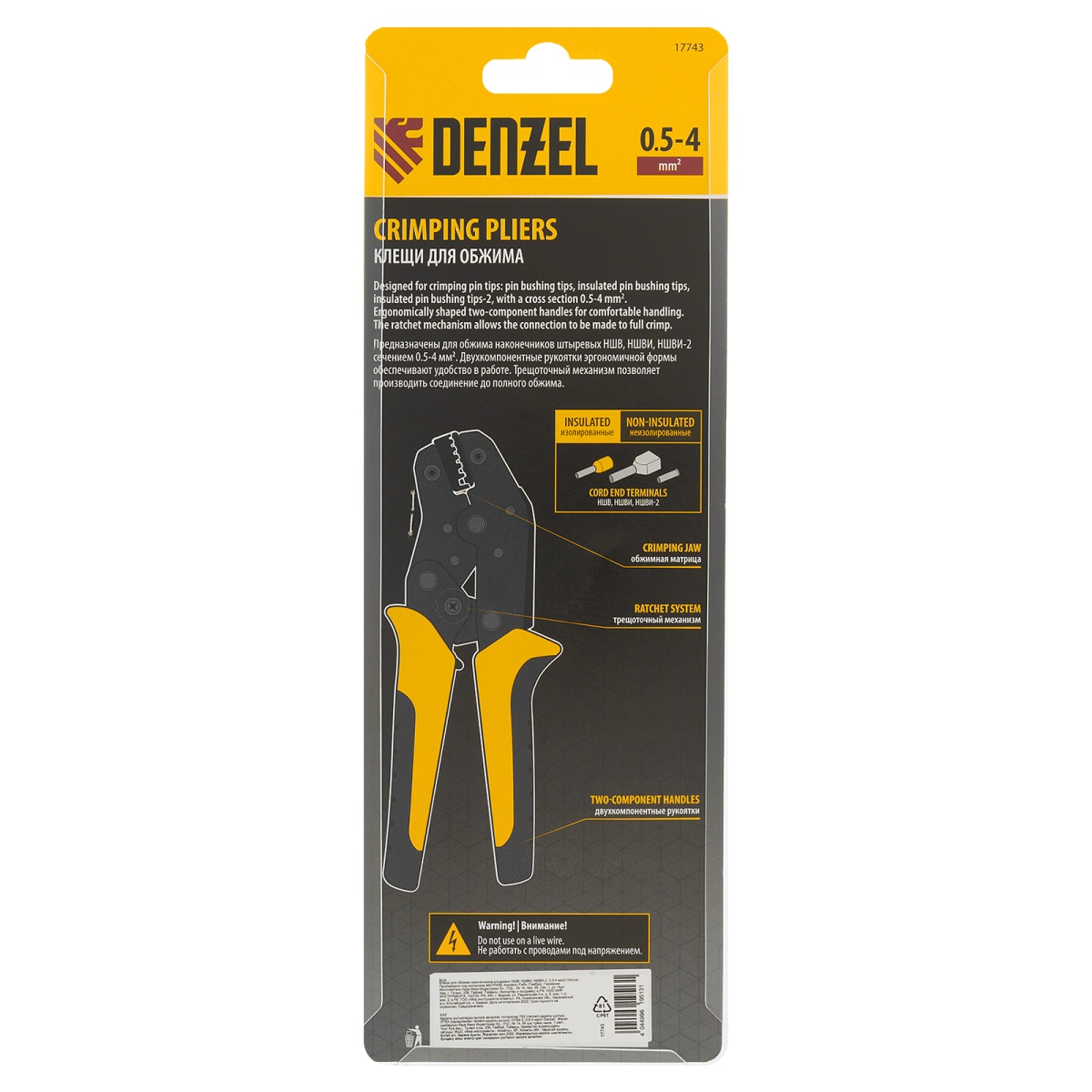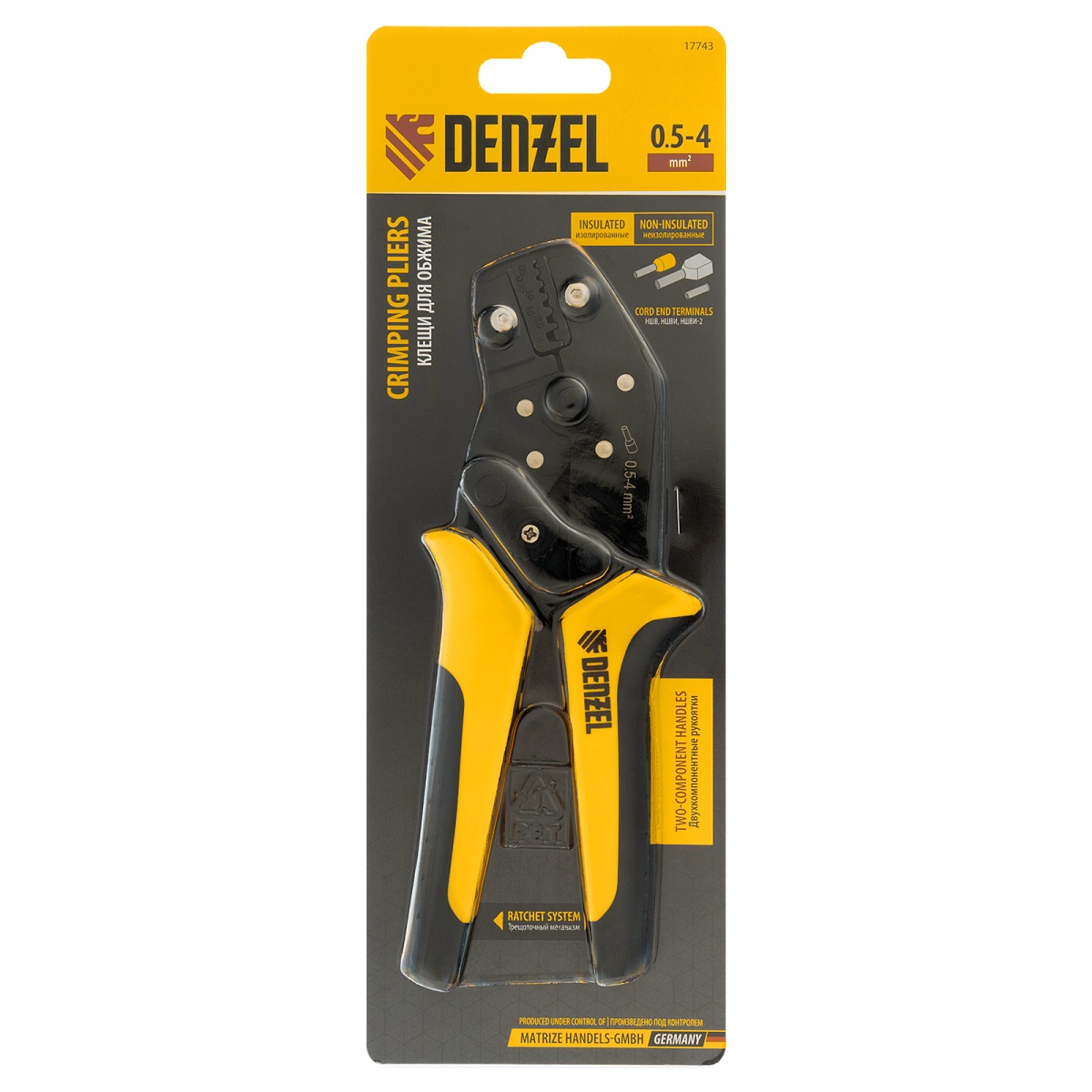 Купить Клещи для обжима наконечников штыревых НШВ, НШВИ, НШВИ-2, 0,5-4 мм2 Denzel V2225 по лучшей цене с доставкой - интернет магазин №1 в России