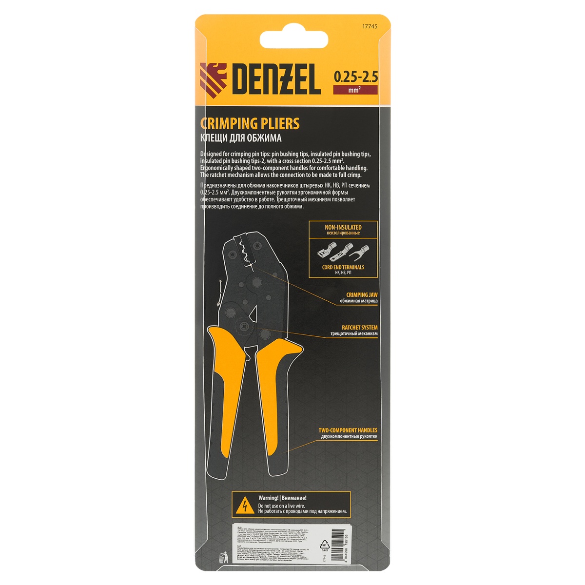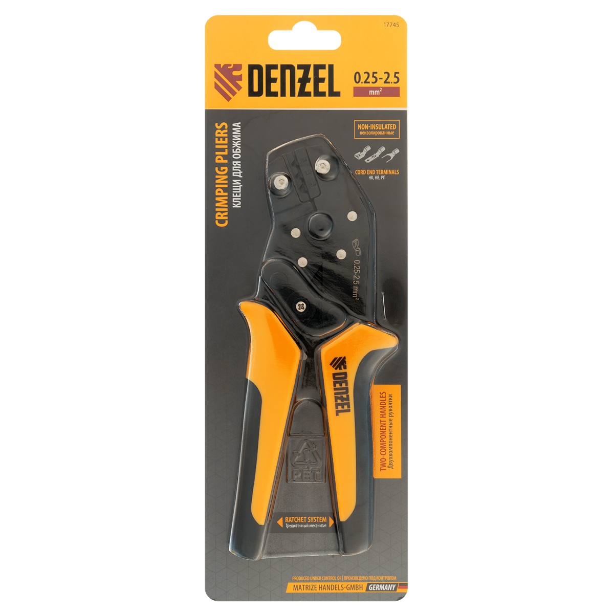 Купить Клещи для обжима неизолированных наконечников НК и НВ, разъемов РП, 0,25 - 2,5 мм2 Denzel V2227 по лучшей цене с доставкой - интернет магазин №1 в России