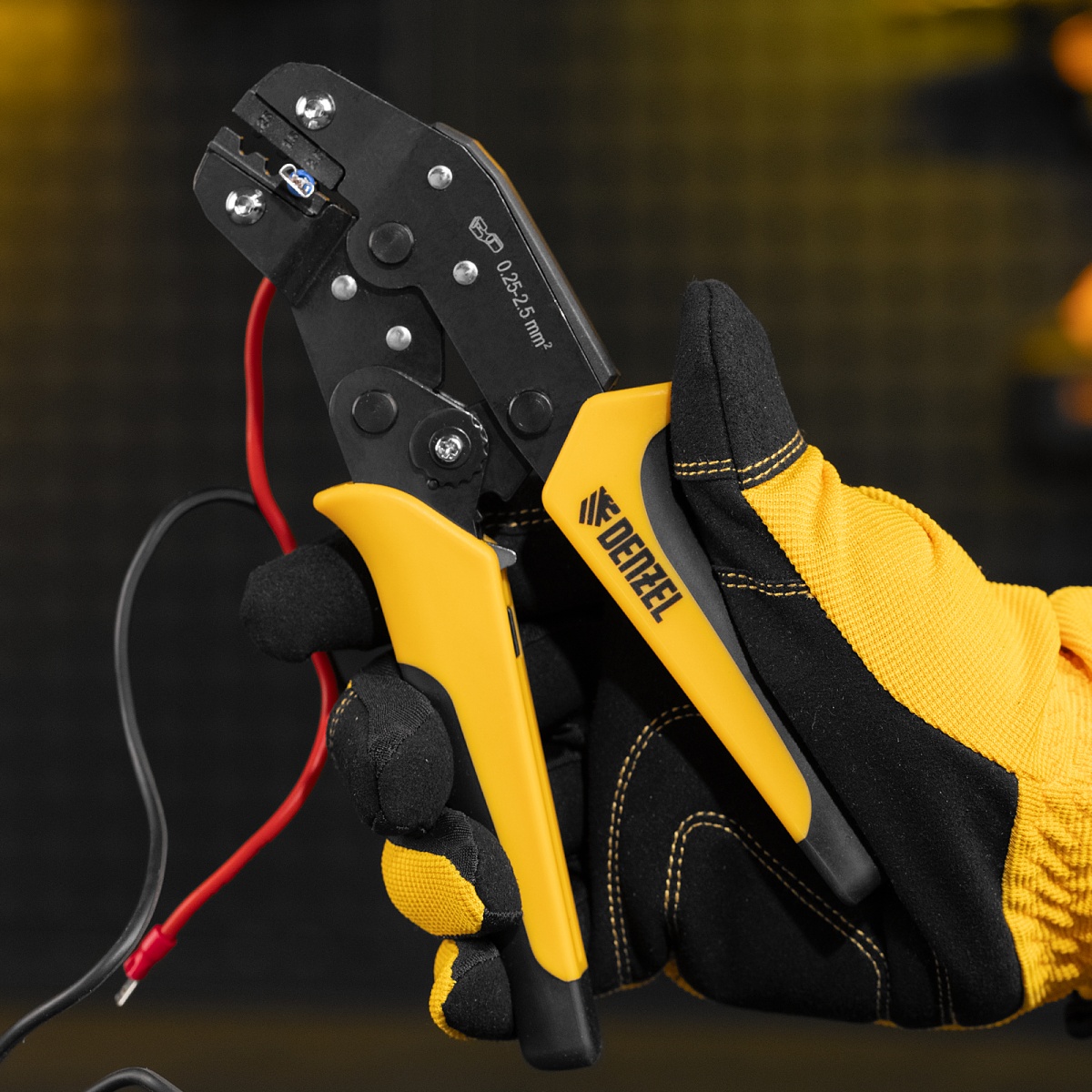Клещи для обжима неизолированных наконечников НК и НВ, разъемов РП, 0,25 - 2,5 мм2 Denzel
