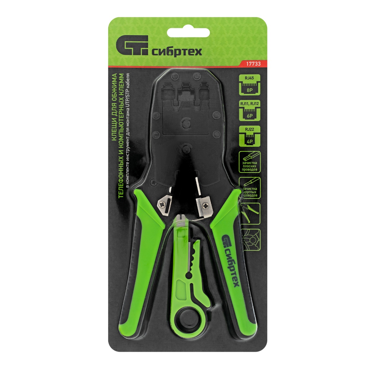 Купить Клещи для обжима телефонных и компьютерных клемм 4P, 6P, 8P, функция обрезания проводов Сибртех V2229 по лучшей цене с доставкой - интернет магазин №1 в России