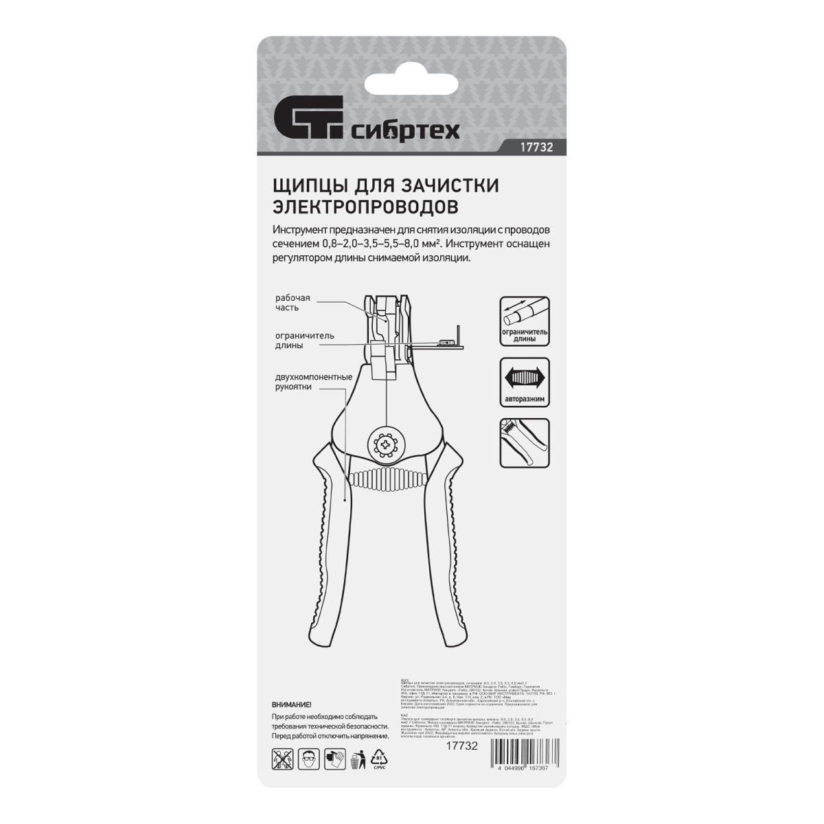 Купить Щипцы для зачистки электропроводов сечением: 0.8, 2.0, 3.5, 5.5, 8.0 мм2 Сибртех V8195 по лучшей цене с доставкой - интернет магазин №1 в России
