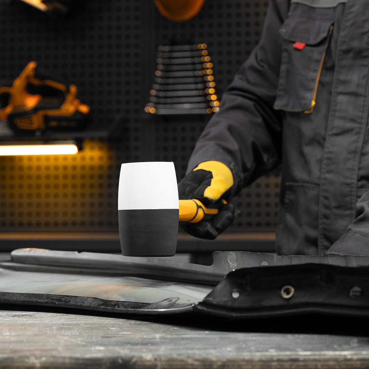 Наличие клапана для сброса давления Киянка резиновая, 680 г, черно-белая, фибергласовая рукоятка c TPR покрытием Denzel