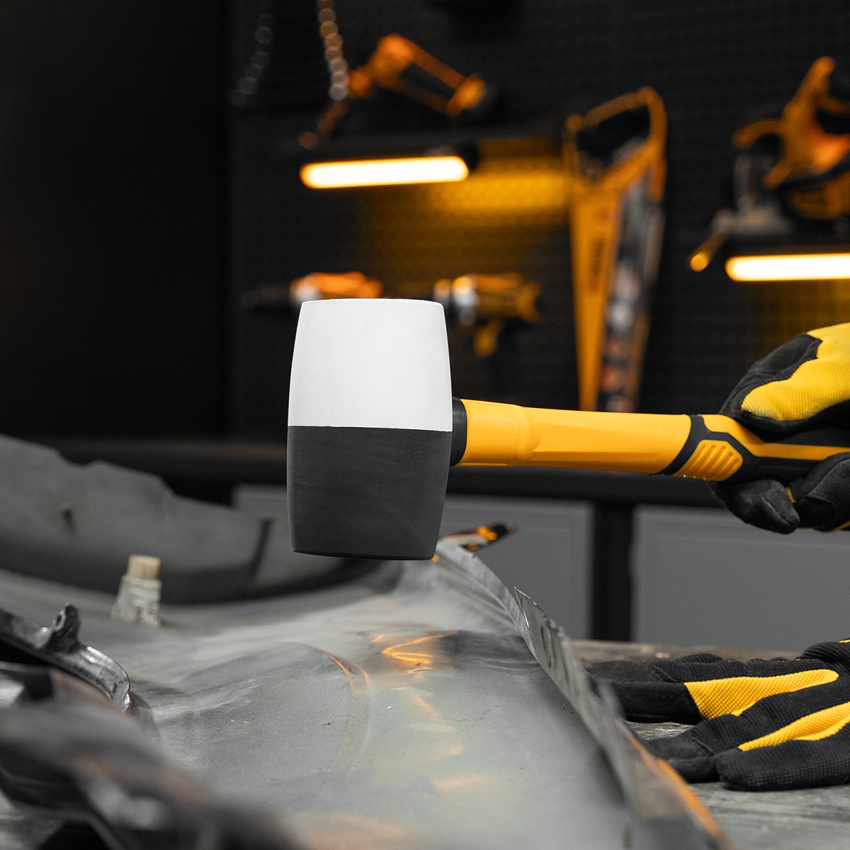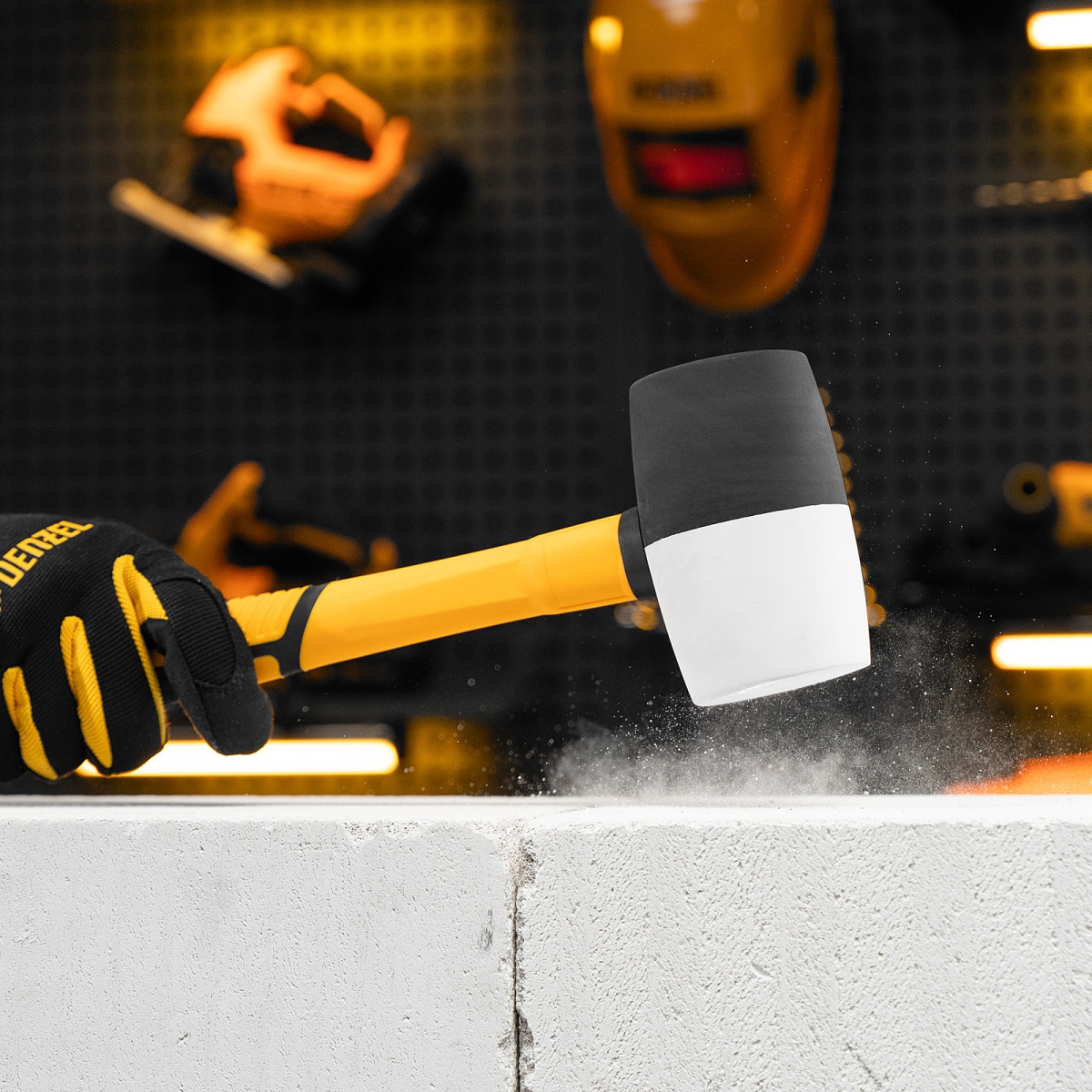 Киянка резиновая, 680 г, черно-белая, фибергласовая рукоятка c TPR покрытием Denzel