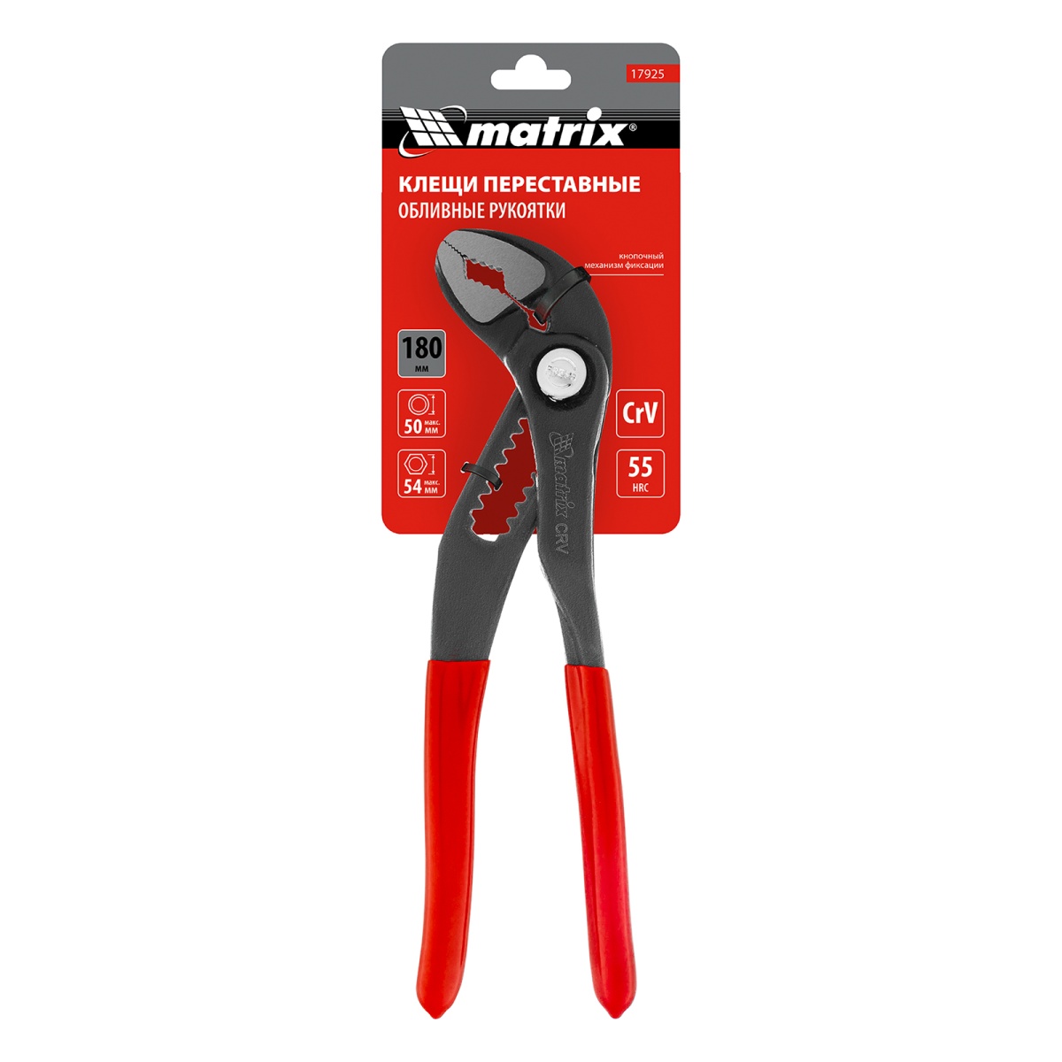 Купить Клещи переставные 180 мм, кнопочный механизм, хром-ванадий, обливные рукоятки Matrix V2232 по лучшей цене с доставкой - интернет магазин №1 в России