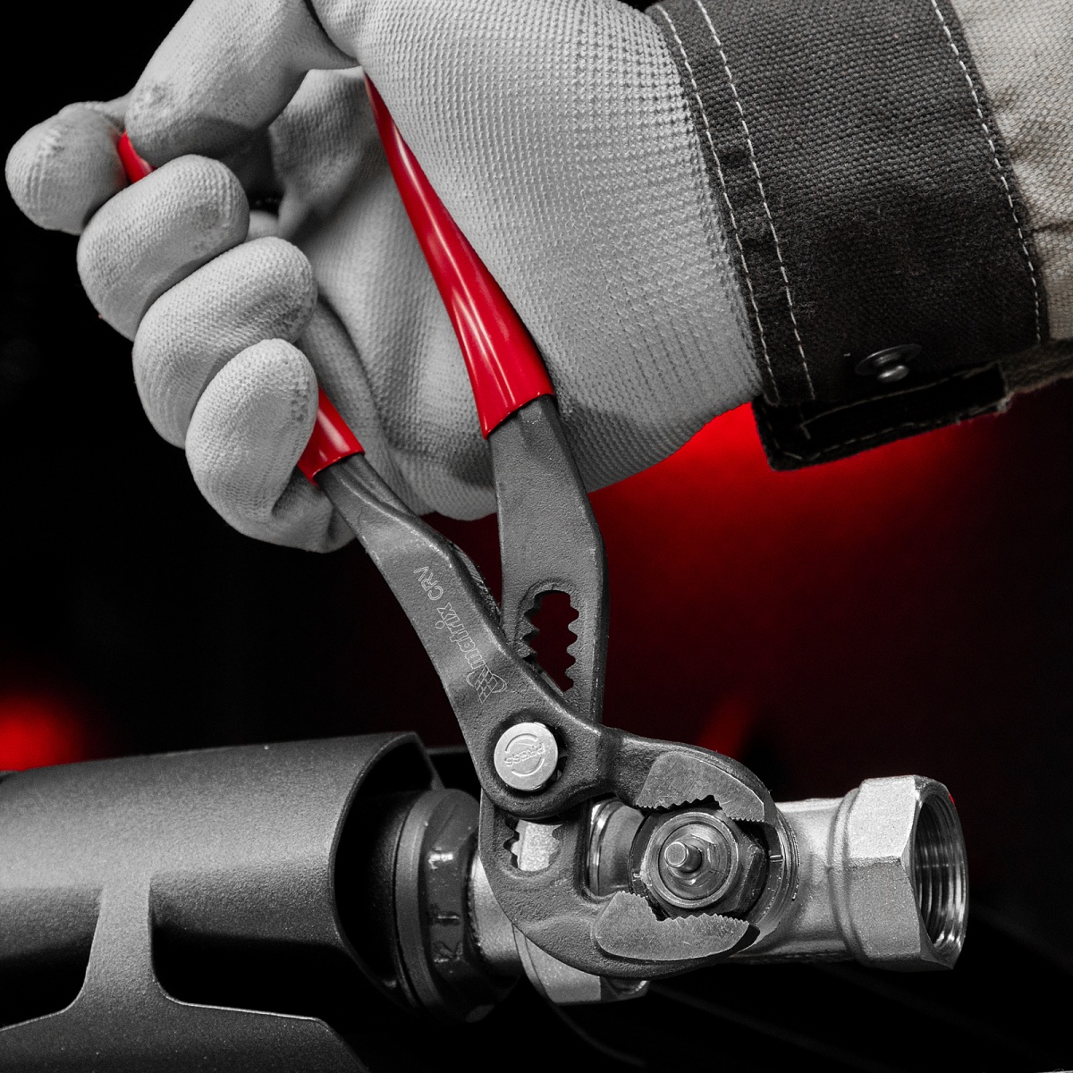 Наличие клапана для сброса давления Клещи переставные 180 мм, кнопочный механизм, хром-ванадий, обливные рукоятки Matrix