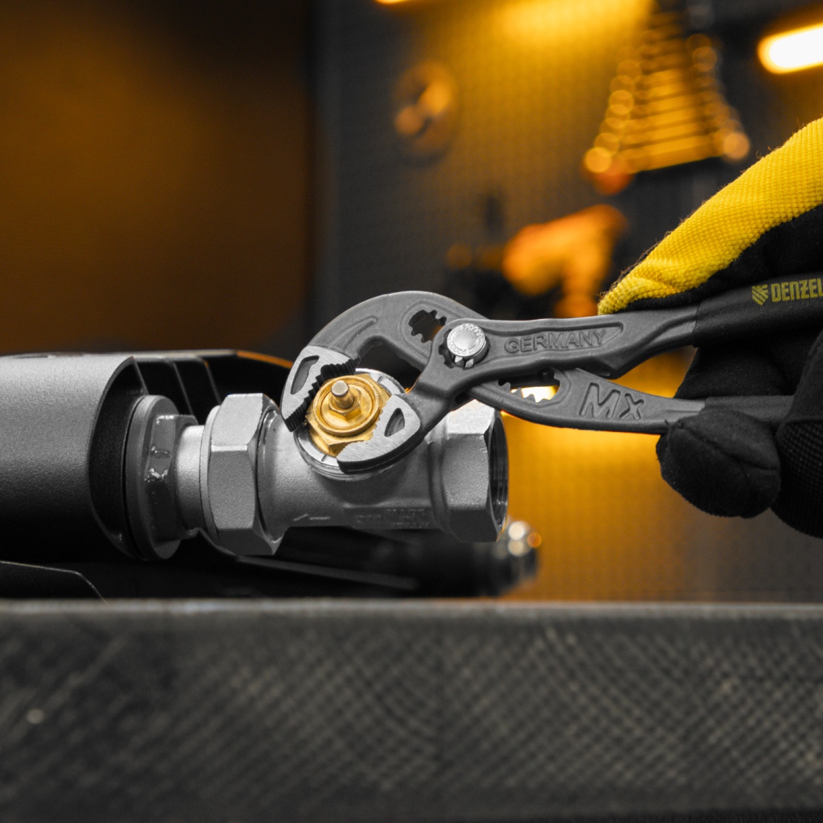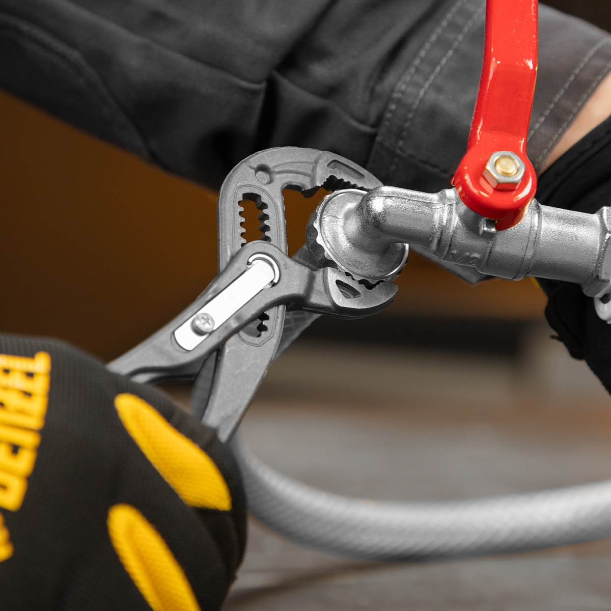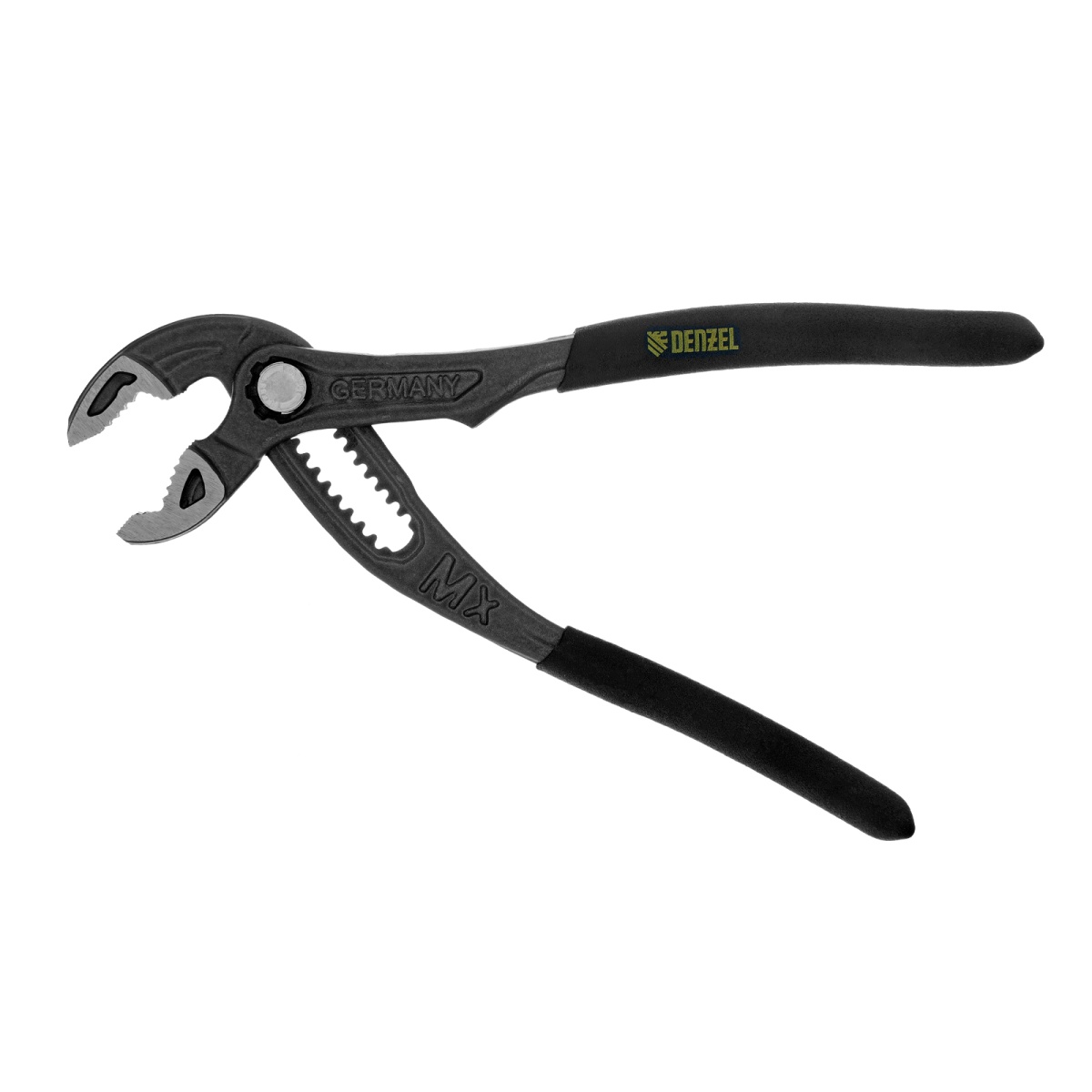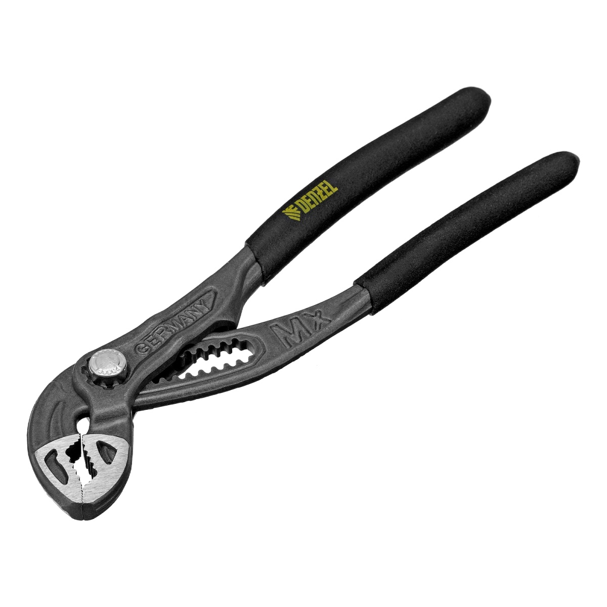 Наличие клапана для сброса давления Клещи переставные, кнопочный механизм, обливные рукоятки, 180 мм Denzel