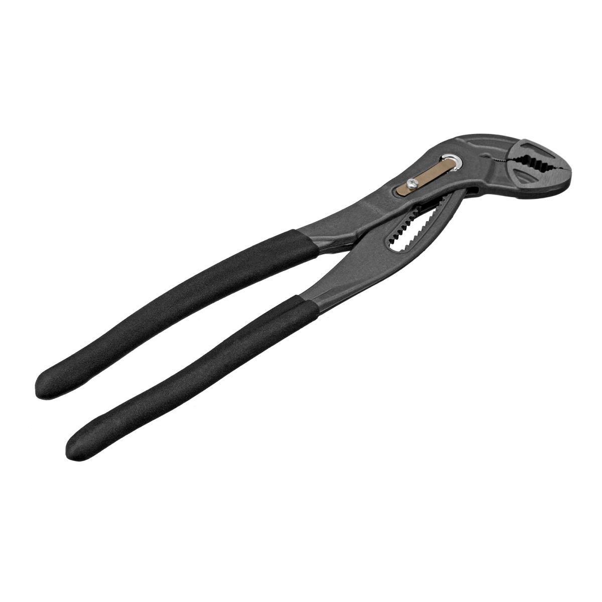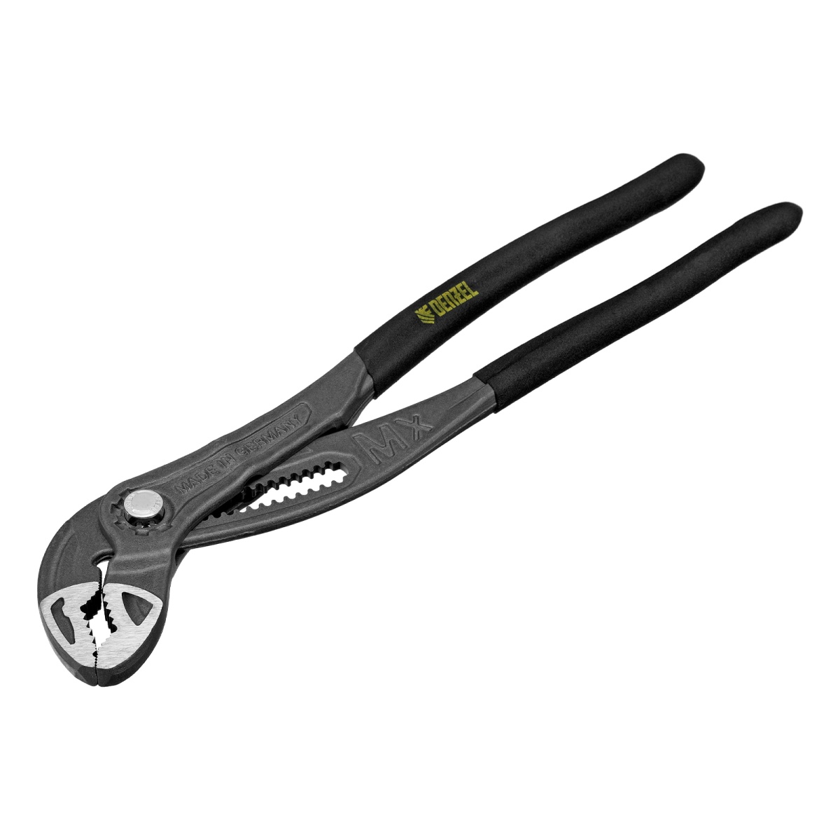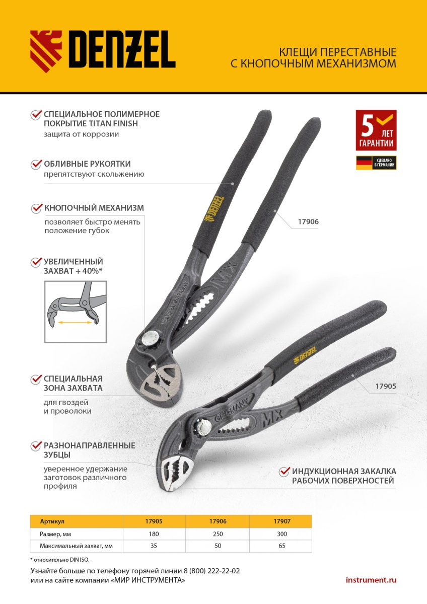 Наличие клапана для сброса давления Клещи переставные, кнопочный механизм, обливные рукоятки, 300 мм Denzel