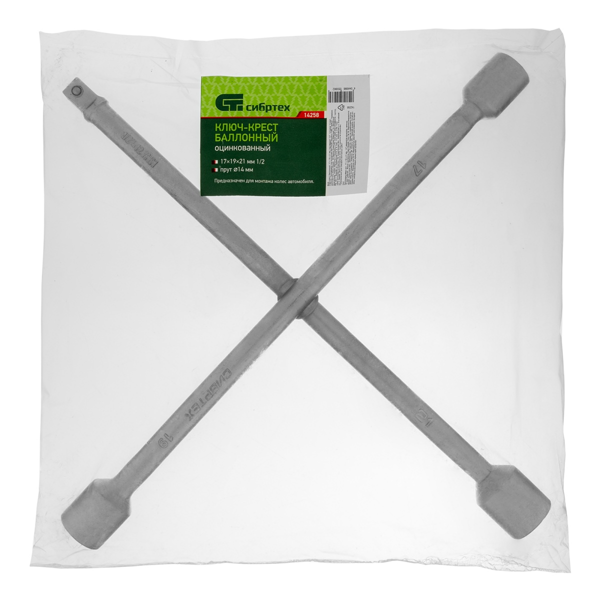 Купить Ключ-крест баллонный, 17 х 19 х 21 мм, под квадрат 1/2, толщина 14 мм Сибртех V2641 по лучшей цене с доставкой - интернет магазин №1 в России