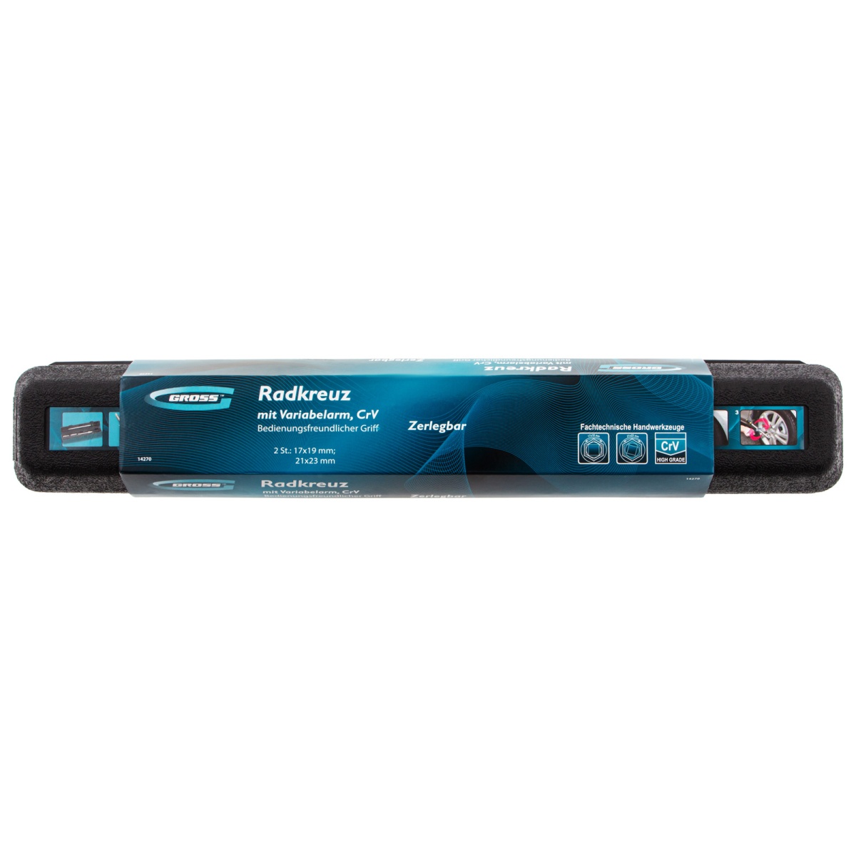 Купить Ключ-крест баллонный, складной с изменяющимся рычагом, 17 мм, 19 мм, 21 мм, 23 мм, CrV, хромированный Gross V2647 по лучшей цене с доставкой - интернет магазин №1 в России