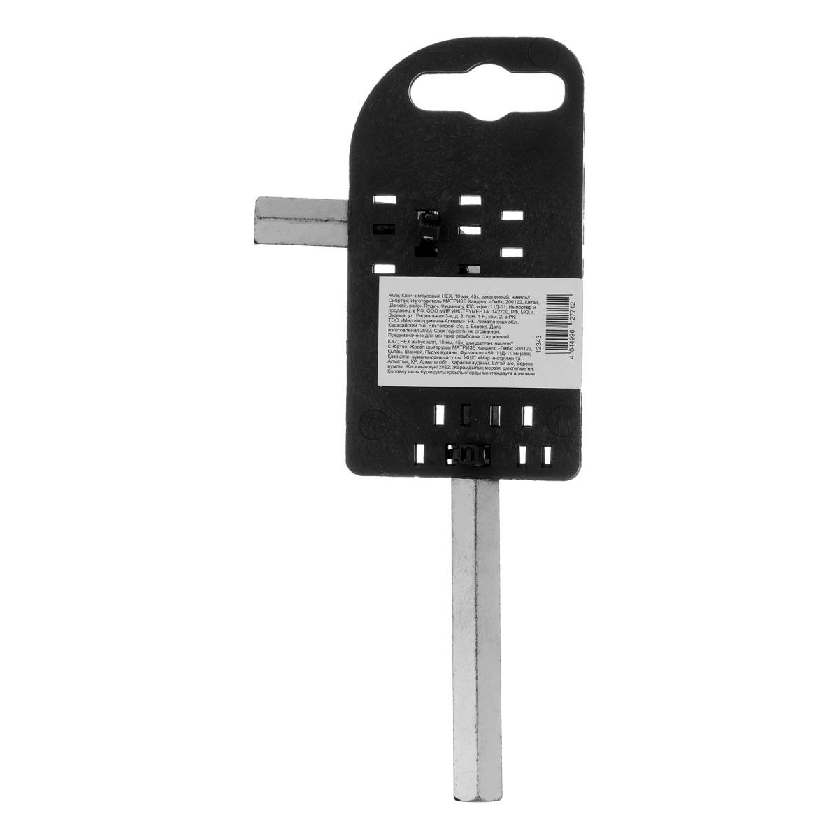 Ключ имбусовый HEX, 10 мм, 45x, закаленный, никель Сибртех
