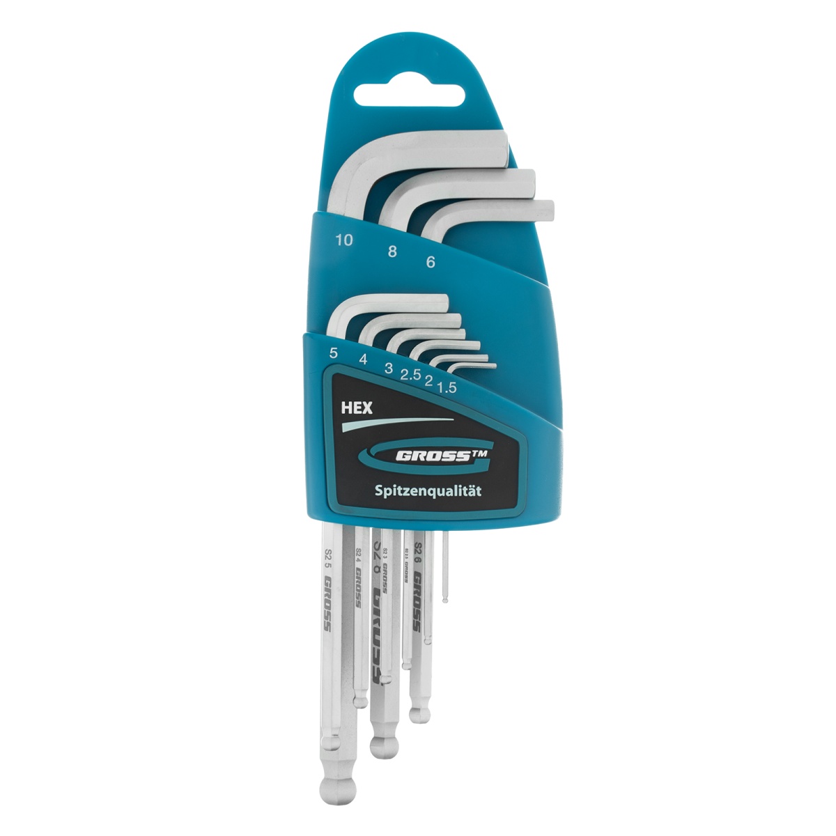 Купить Набор ключей имбусовых HEX, 1.5-10 мм, S2, 9 шт, удлиненные с шаром, сатинированные Gross V4300 по лучшей цене с доставкой - интернет магазин №1 в России