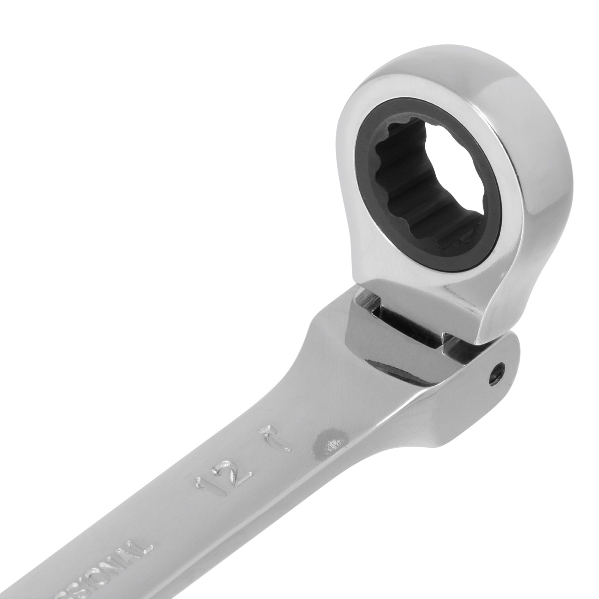 Ключ комбинированный трещоточный, 12 мм, CrV, шарнирный, зеркальный хром Matrix Professional