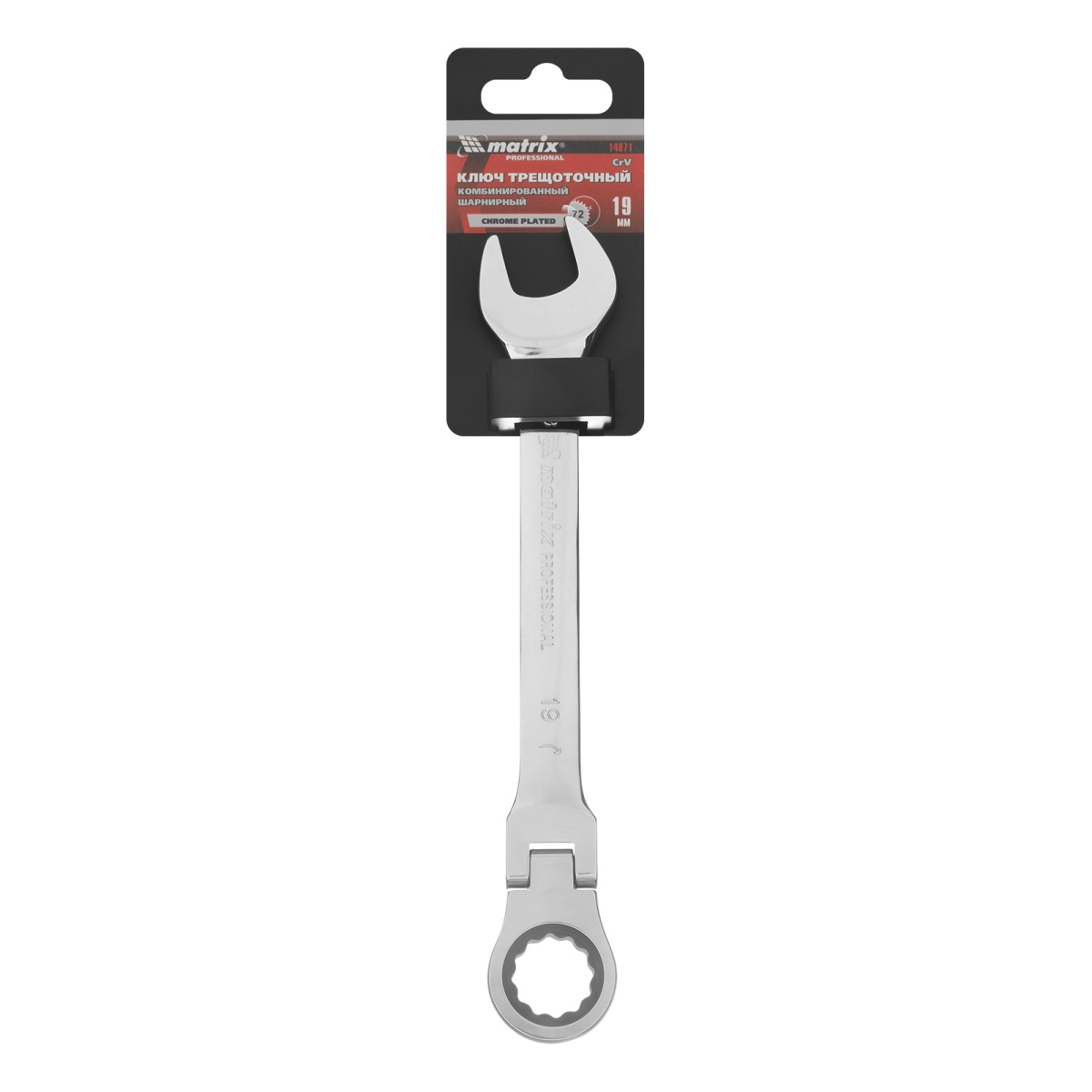 Купить Ключ комбинированный трещоточный, 19 мм, CrV, шарнирный, зеркальный хром Matrix Professional V2364 по лучшей цене с доставкой - интернет магазин №1 в России