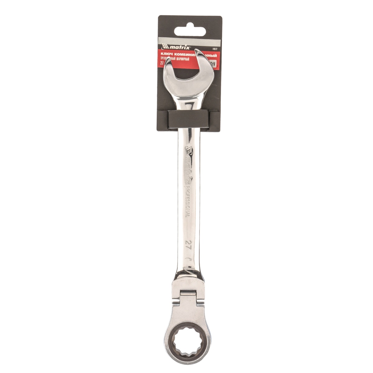 Купить Ключ комбинированный трещоточный, 27 мм, CrV, шарнирный, зеркальный хром Matrix V2369 по лучшей цене с доставкой - интернет магазин №1 в России