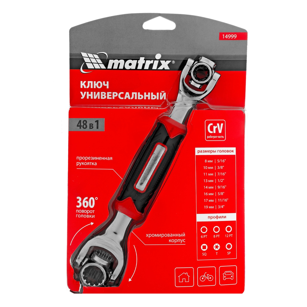 Купить Ключ универсальный 48 в 1, СrV, 8-19мм, Spline Matrix V2640 по лучшей цене с доставкой - интернет магазин №1 в России