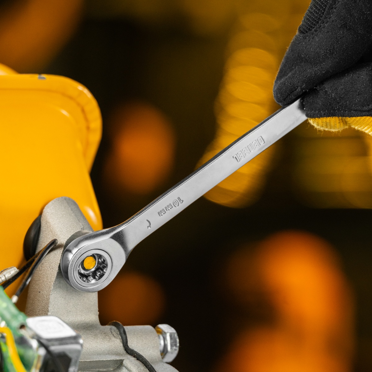 Ключ комбинированный трещоточный, 10 мм, CrV, матовый хром Denzel