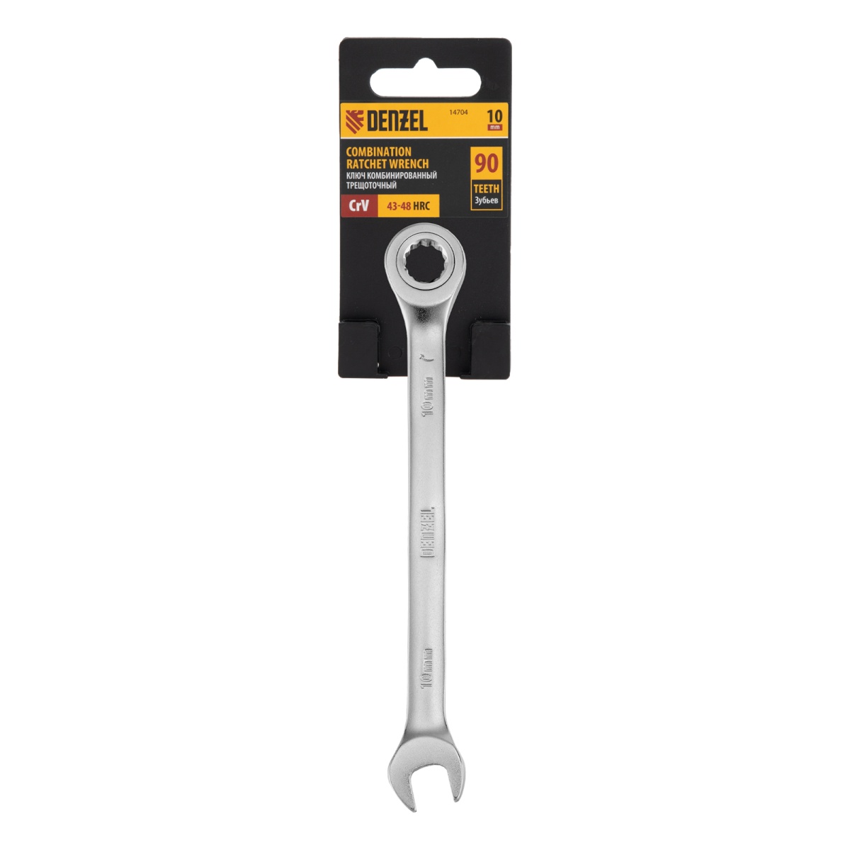 Купить Ключ комбинированный трещоточный, 10 мм, CrV, матовый хром Denzel V2334 по лучшей цене с доставкой - интернет магазин №1 в России