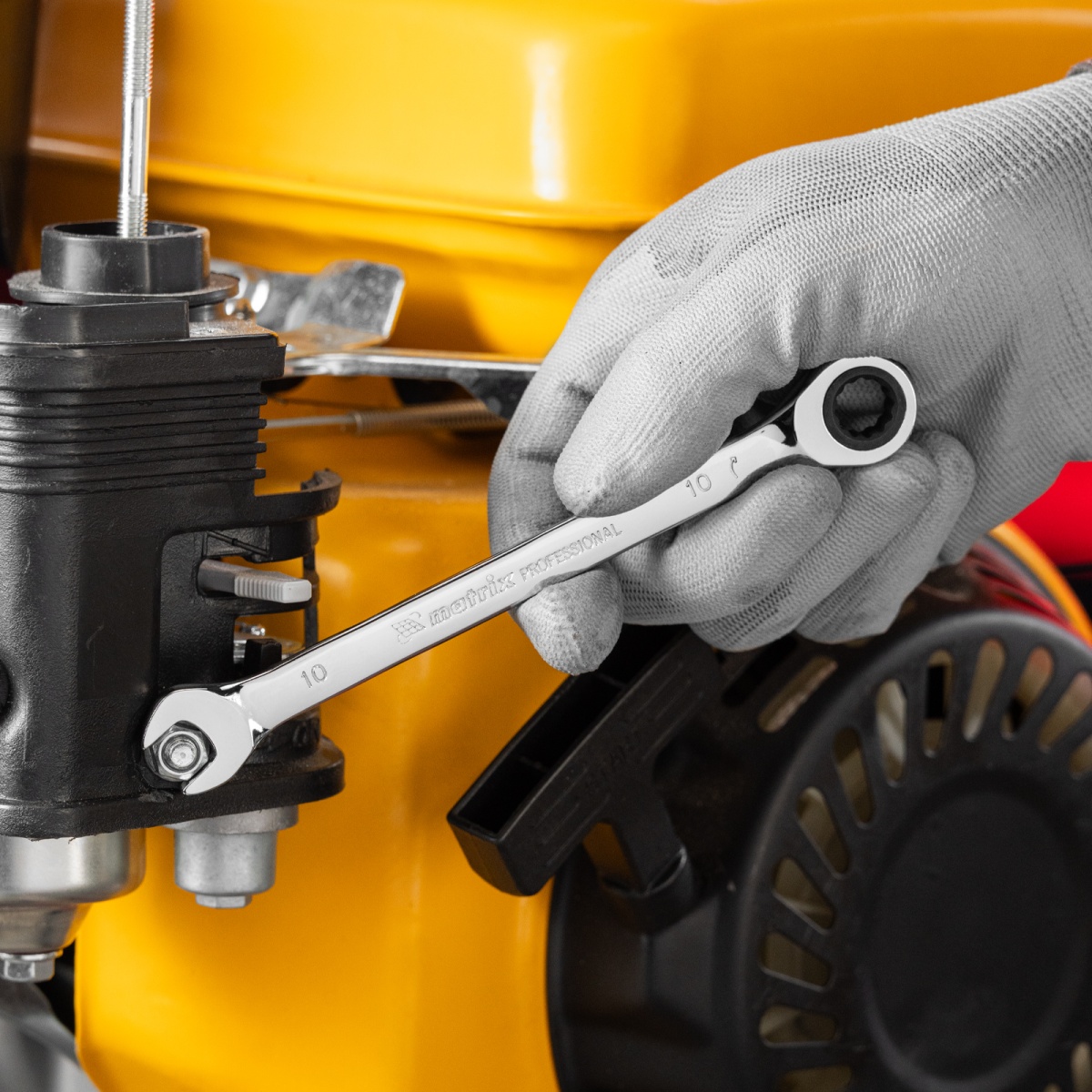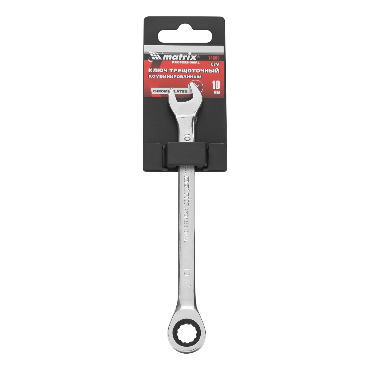 Купить Ключ комбинированный трещоточный, 10 мм, CrV, зеркальный хром Matrix Professional V2333 по лучшей цене с доставкой - интернет магазин №1 в России