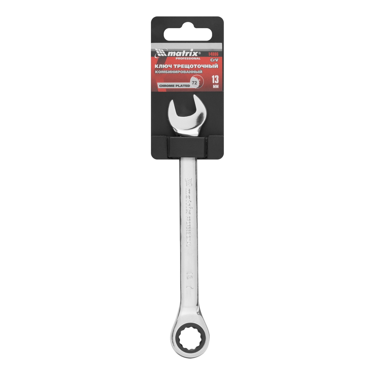 Купить Ключ комбинированный трещоточный, 13 мм, CrV, зеркальный хром Matrix Professional V2342 по лучшей цене с доставкой - интернет магазин №1 в России