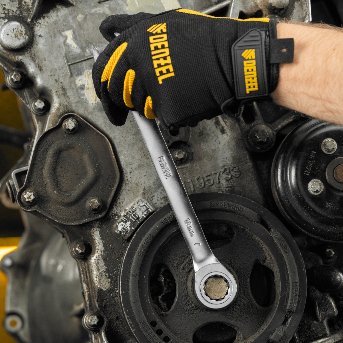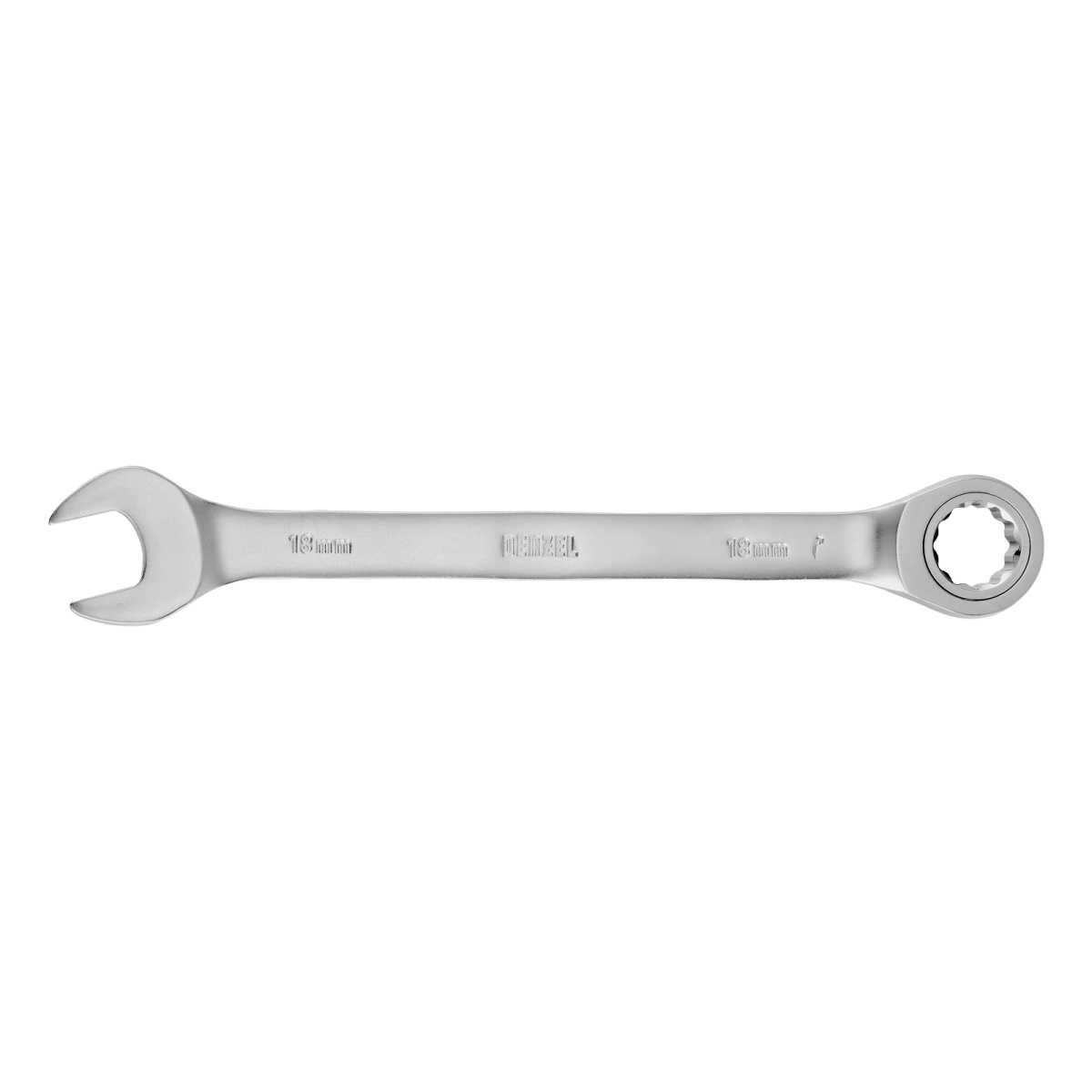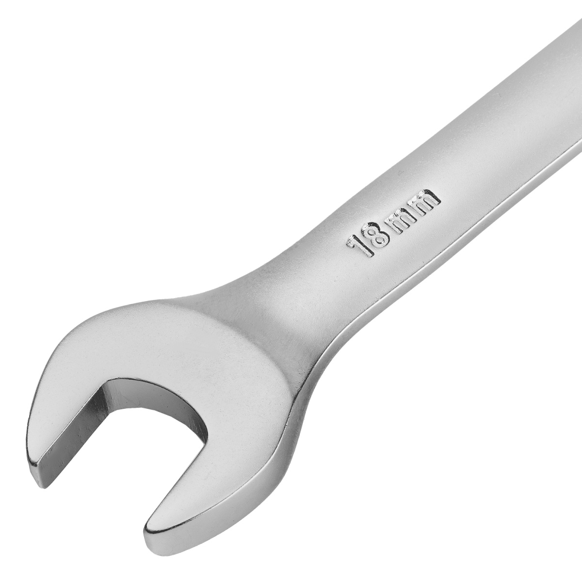 Ключ комбинированный трещоточный, 18 мм, CrV, матовый хром Denzel