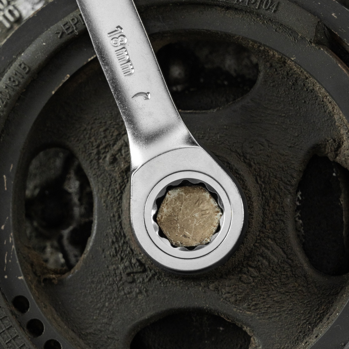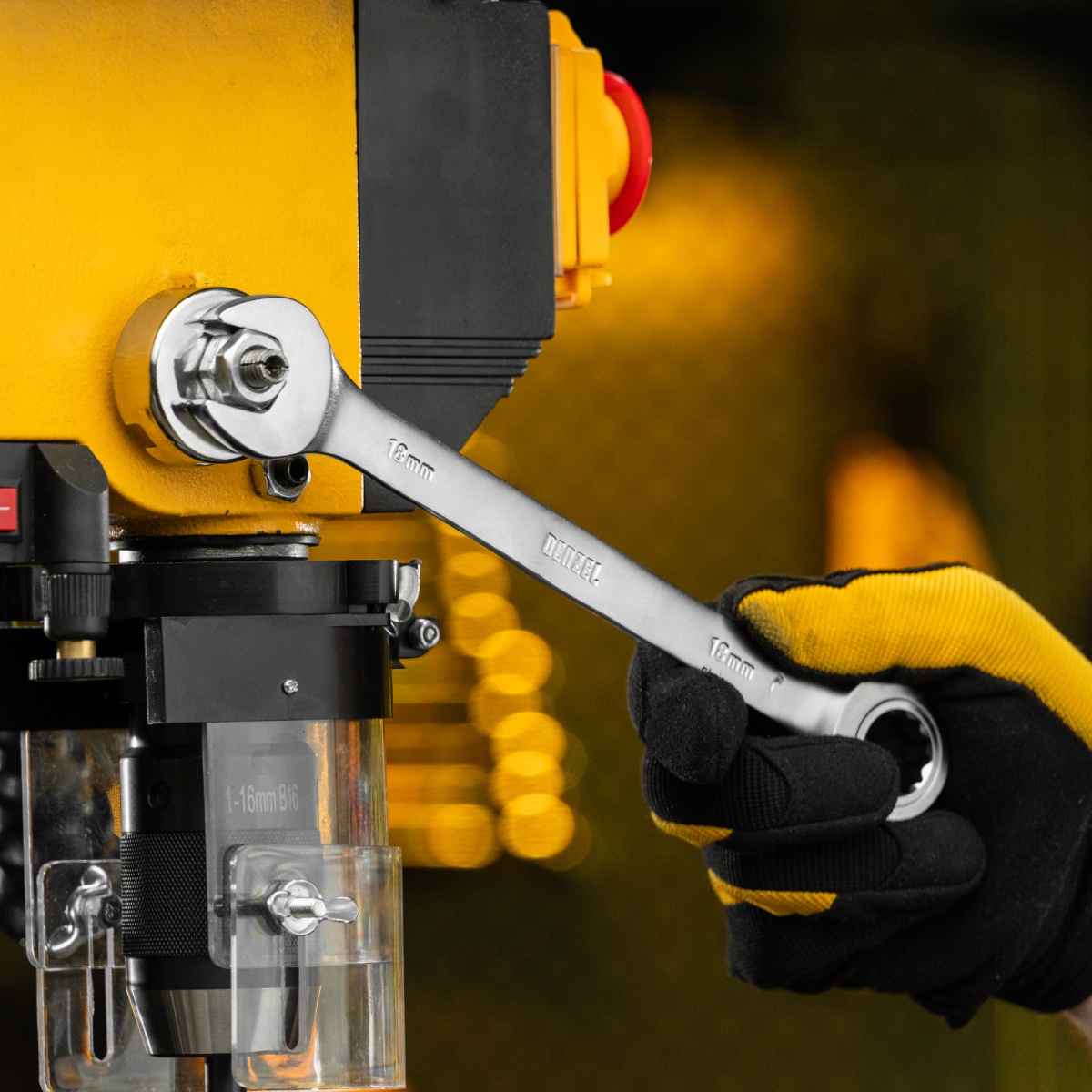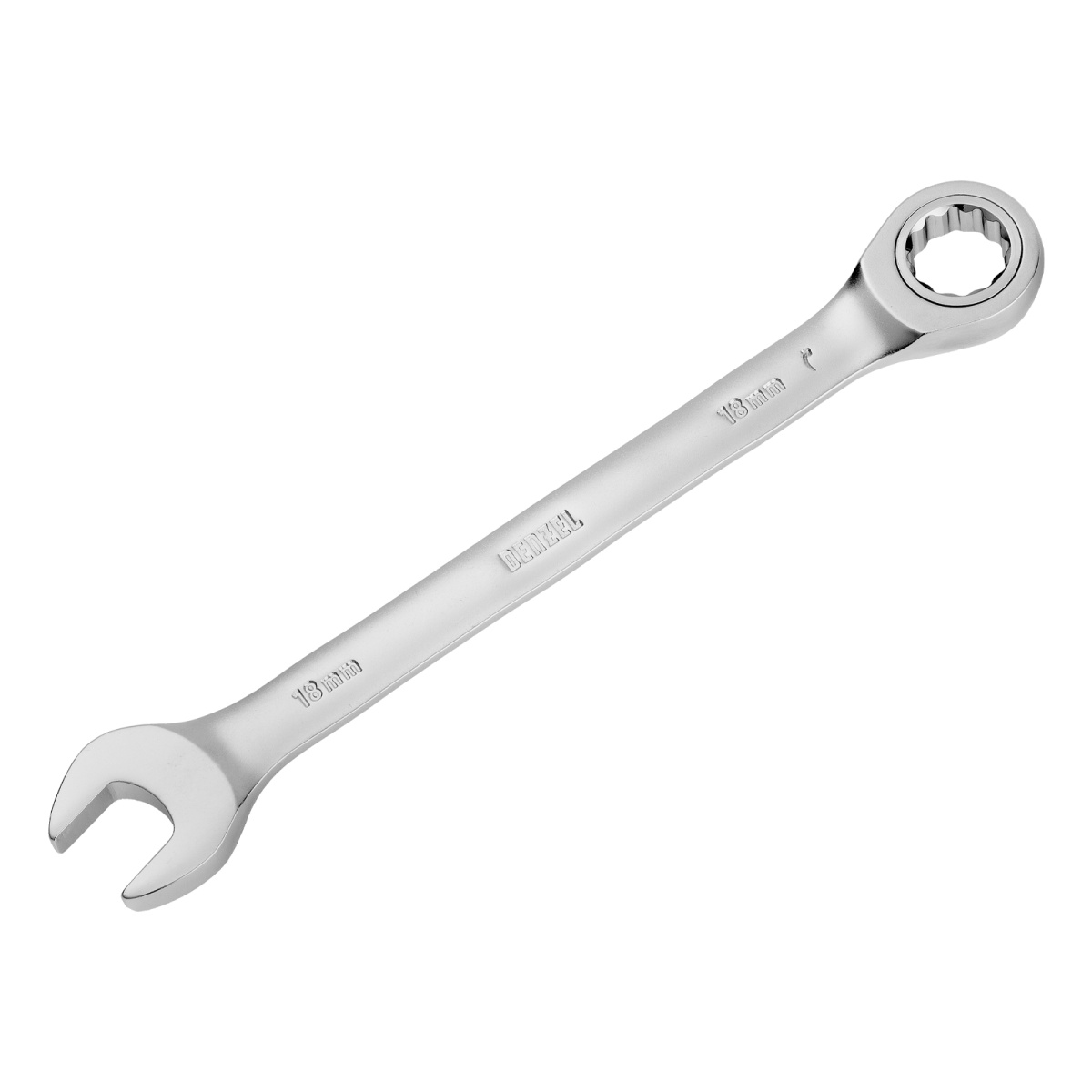 Ключ комбинированный трещоточный, 18 мм, CrV, матовый хром Denzel