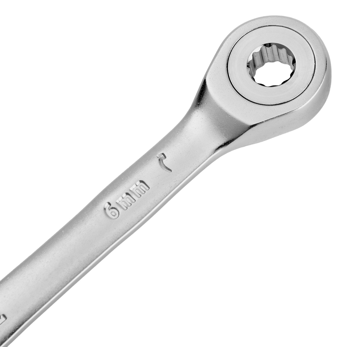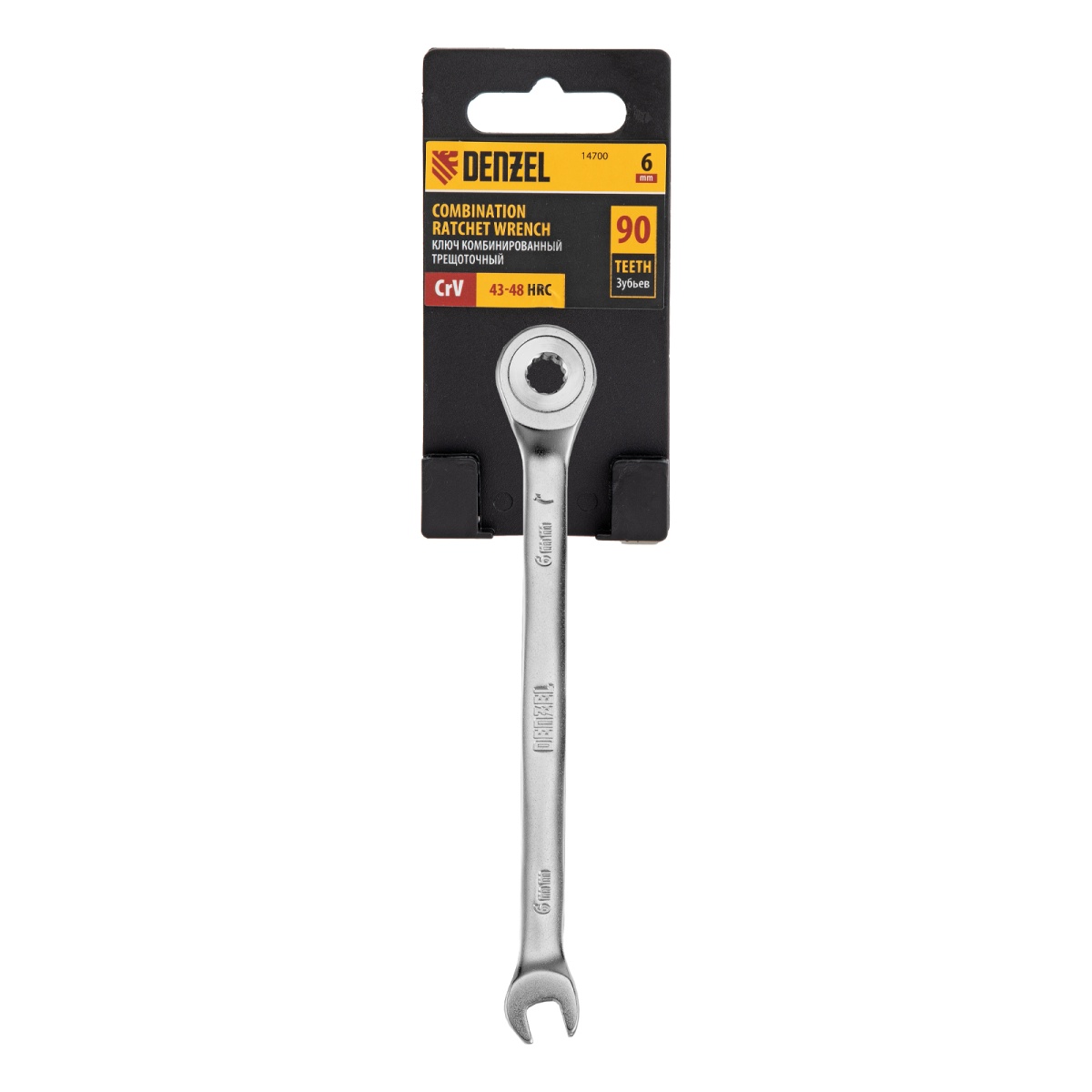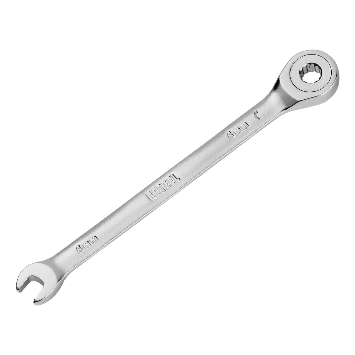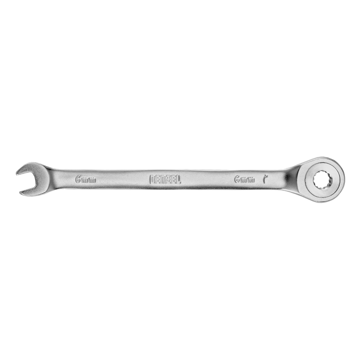 Ключ комбинированный трещоточный, 6 мм, CrV, матовый хром Denzel