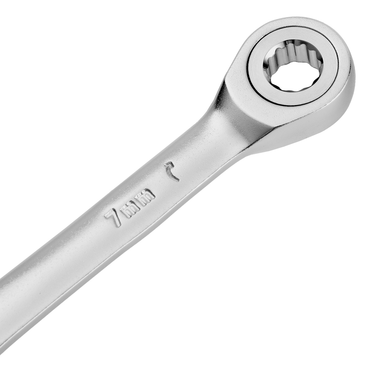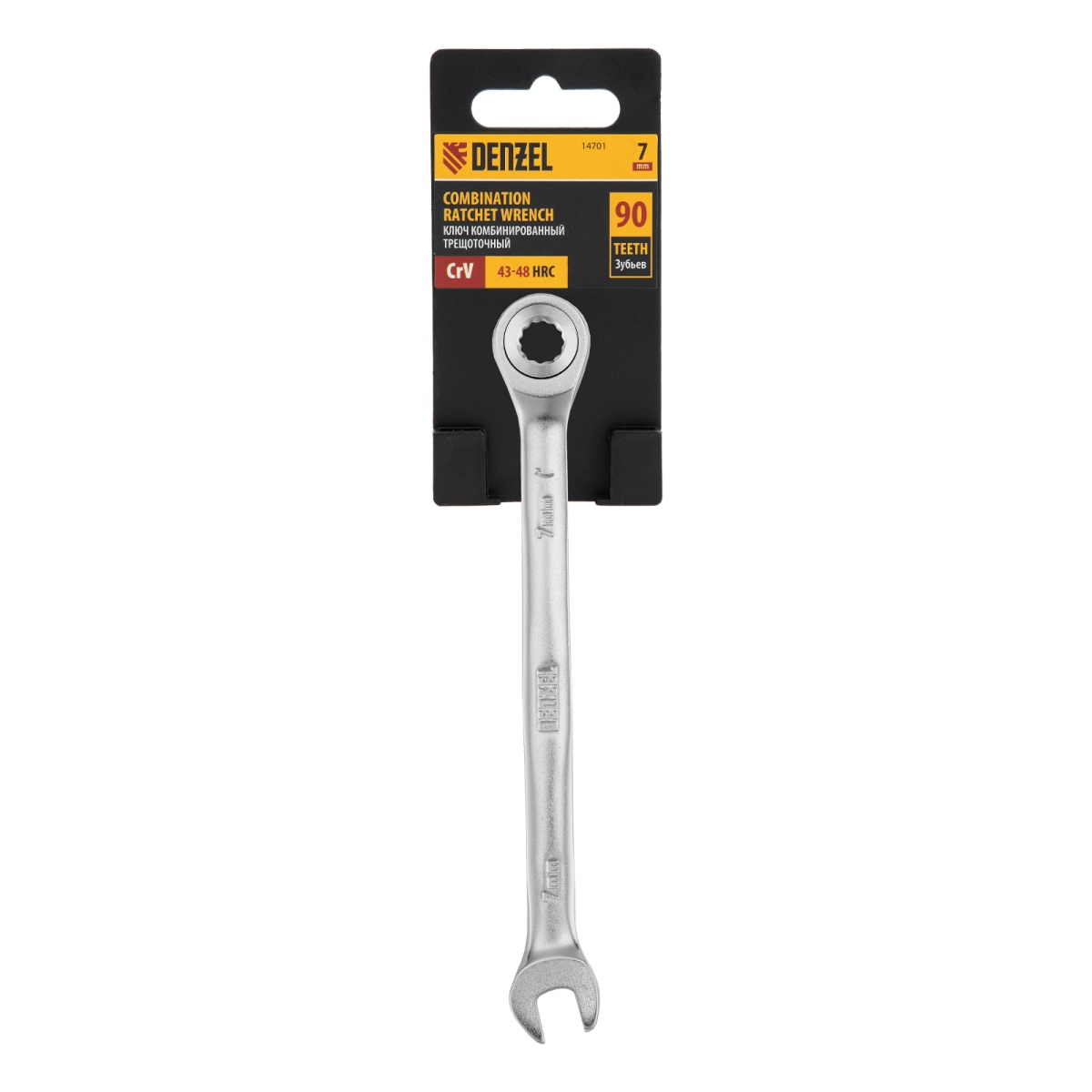Ключ комбинированный трещоточный, 7 мм, CrV, матовый хром Denzel