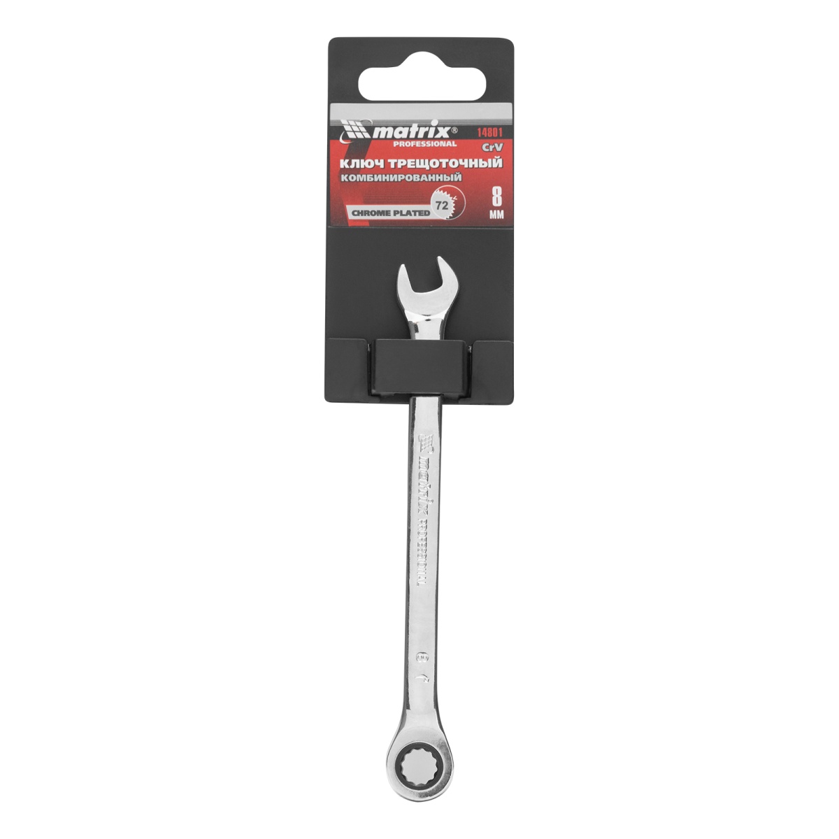 Купить Ключ комбинированный трещоточный, 8 мм, CrV, зеркальный хром Matrix Professional V2374 по лучшей цене с доставкой - интернет магазин №1 в России