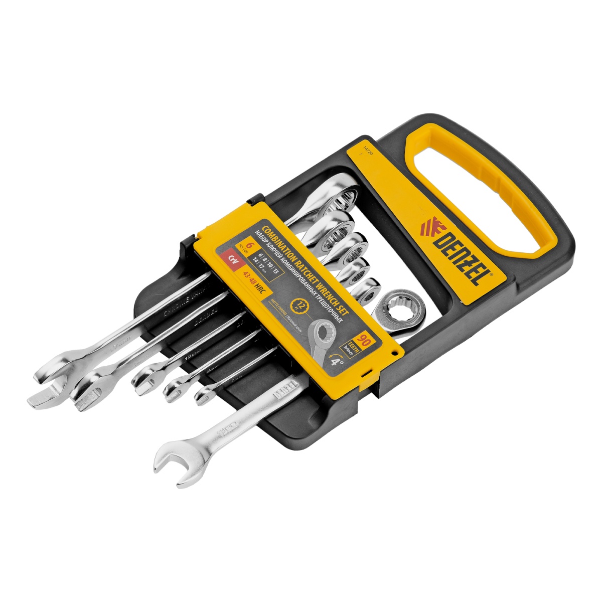 Набор ключей комбинированных трещоточных 6-17 мм, 6 шт., CrV, матовый хром Denzel