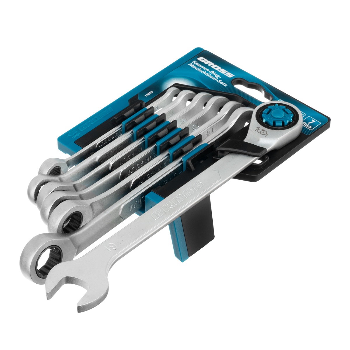 Купить Набор ключей комбинированных трещоточных, количество зубьев 100, СRV, 7 шт, 8-19 мм Gross V4348 по лучшей цене с доставкой - интернет магазин №1 в России