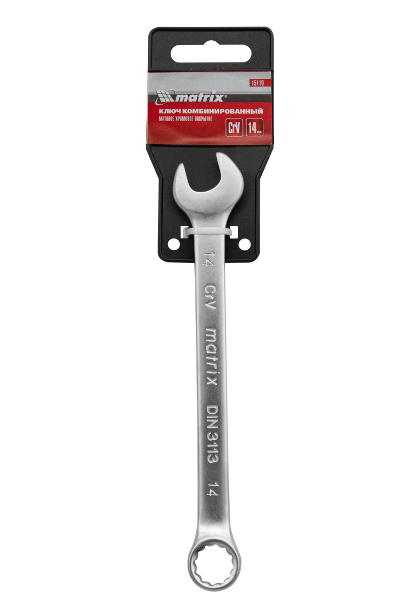 Ключ комбинированный, 14 мм, CrV, матовый хром Matrix