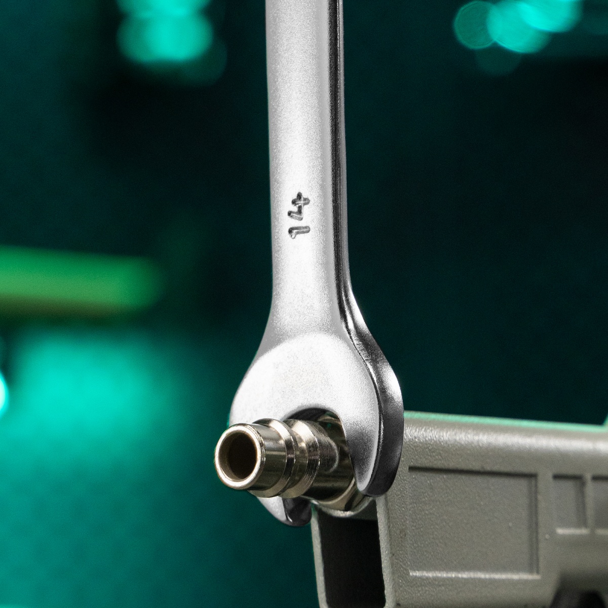 Наличие клапана для сброса давления Ключ комбинированный, 14 мм, CrV, матовый хром Stels
