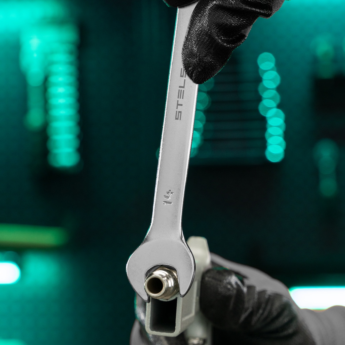 Купить Ключ комбинированный, 14 мм, CrV, матовый хром Stels V2397 по лучшей цене с доставкой - интернет магазин №1 в России