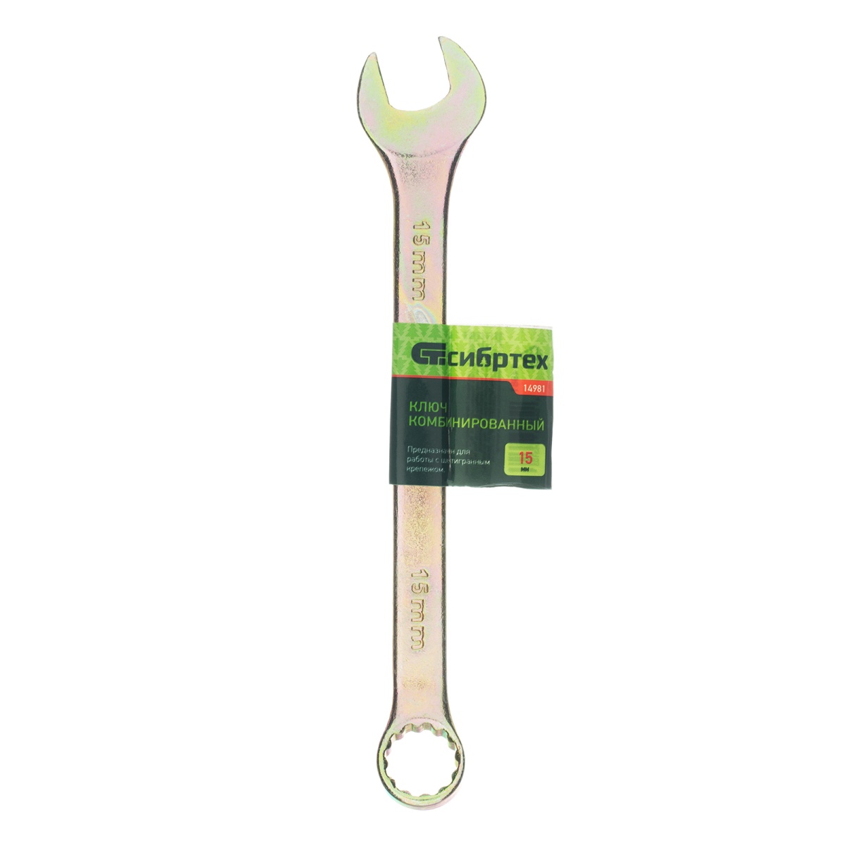 Ключ комбинированный, 15 мм, желтый цинк Сибртех