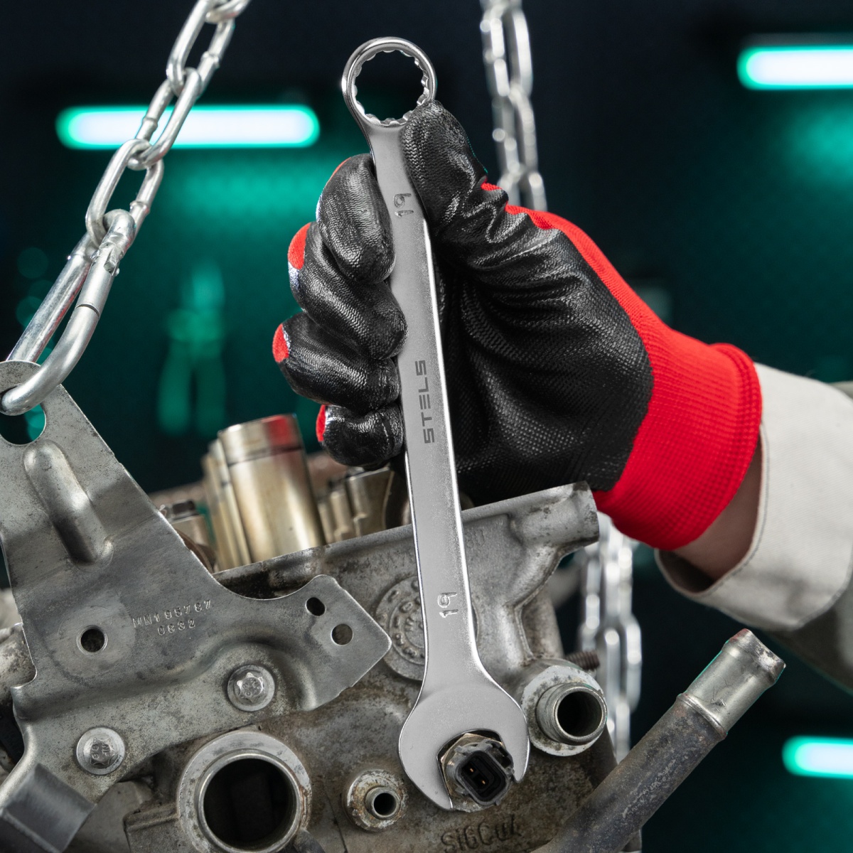 Ключ комбинированный, 19 мм, CrV, матовый хром Stels
