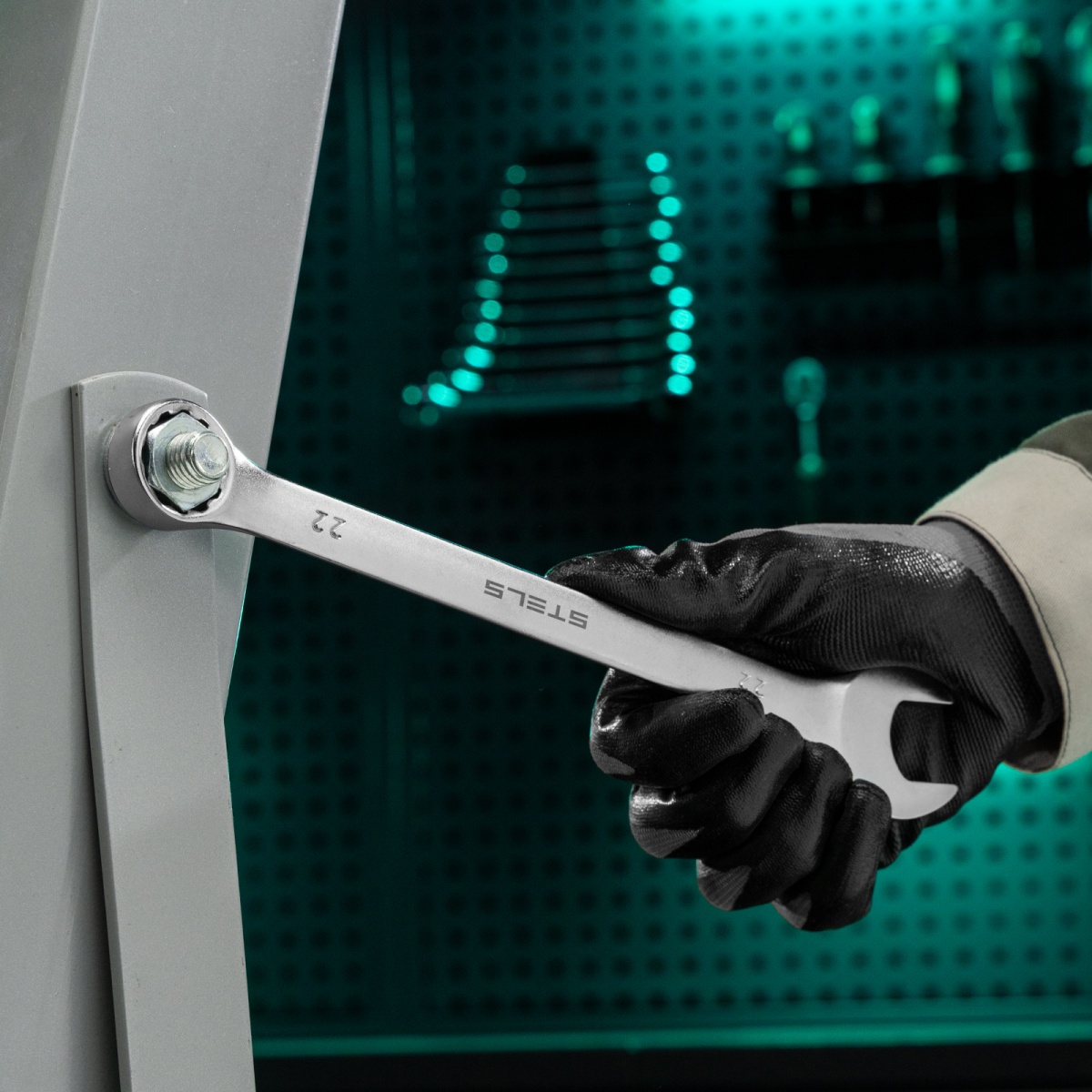 Ключ комбинированный, 22 мм, CrV, матовый хром Stels