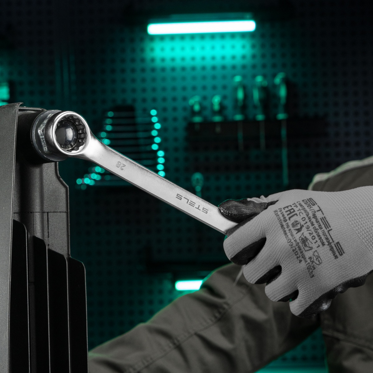 Купить Ключ комбинированный, 28 мм, CrV, матовый хром Stels V2441 по лучшей цене с доставкой - интернет магазин №1 в России