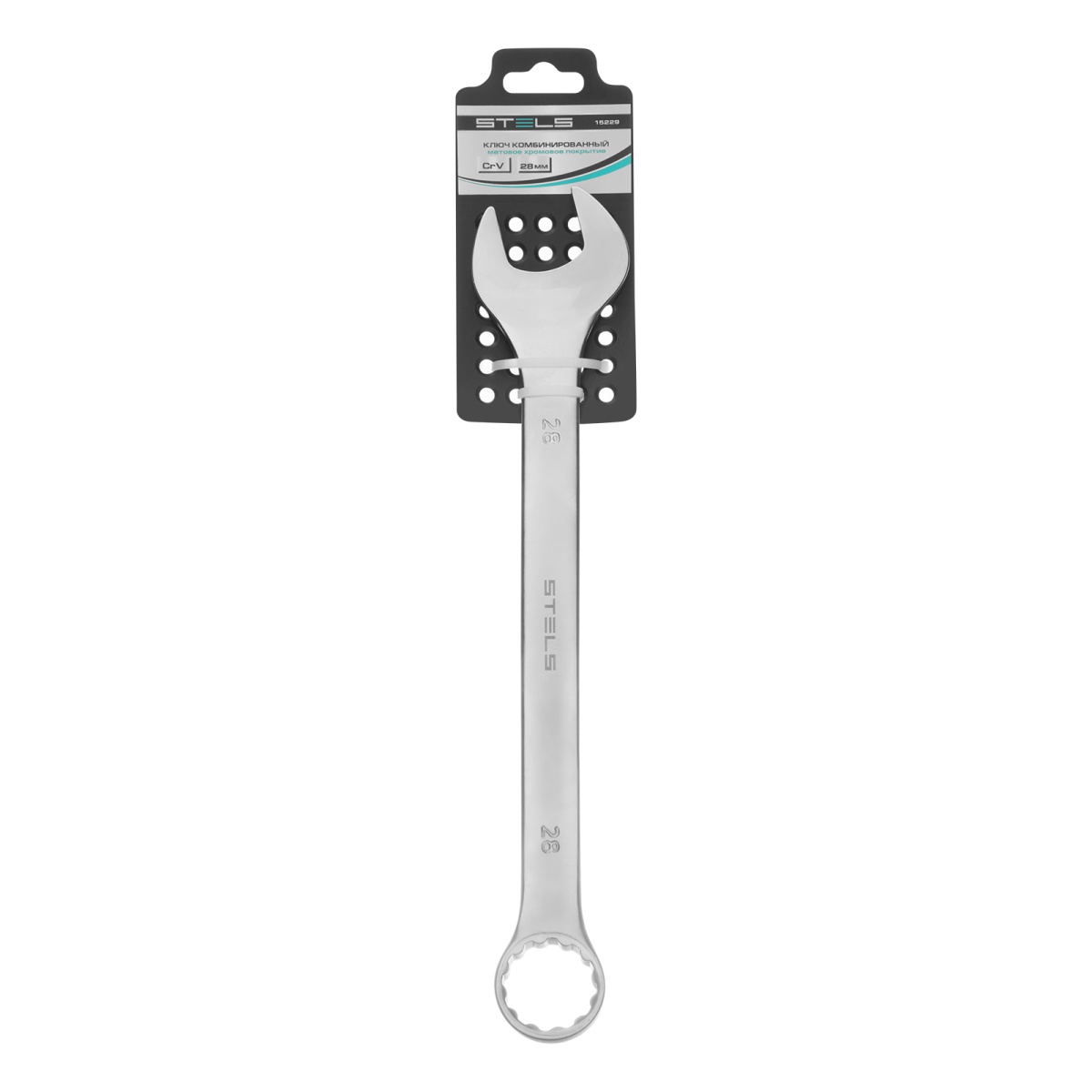 Ключ комбинированный, 28 мм, CrV, матовый хром Stels