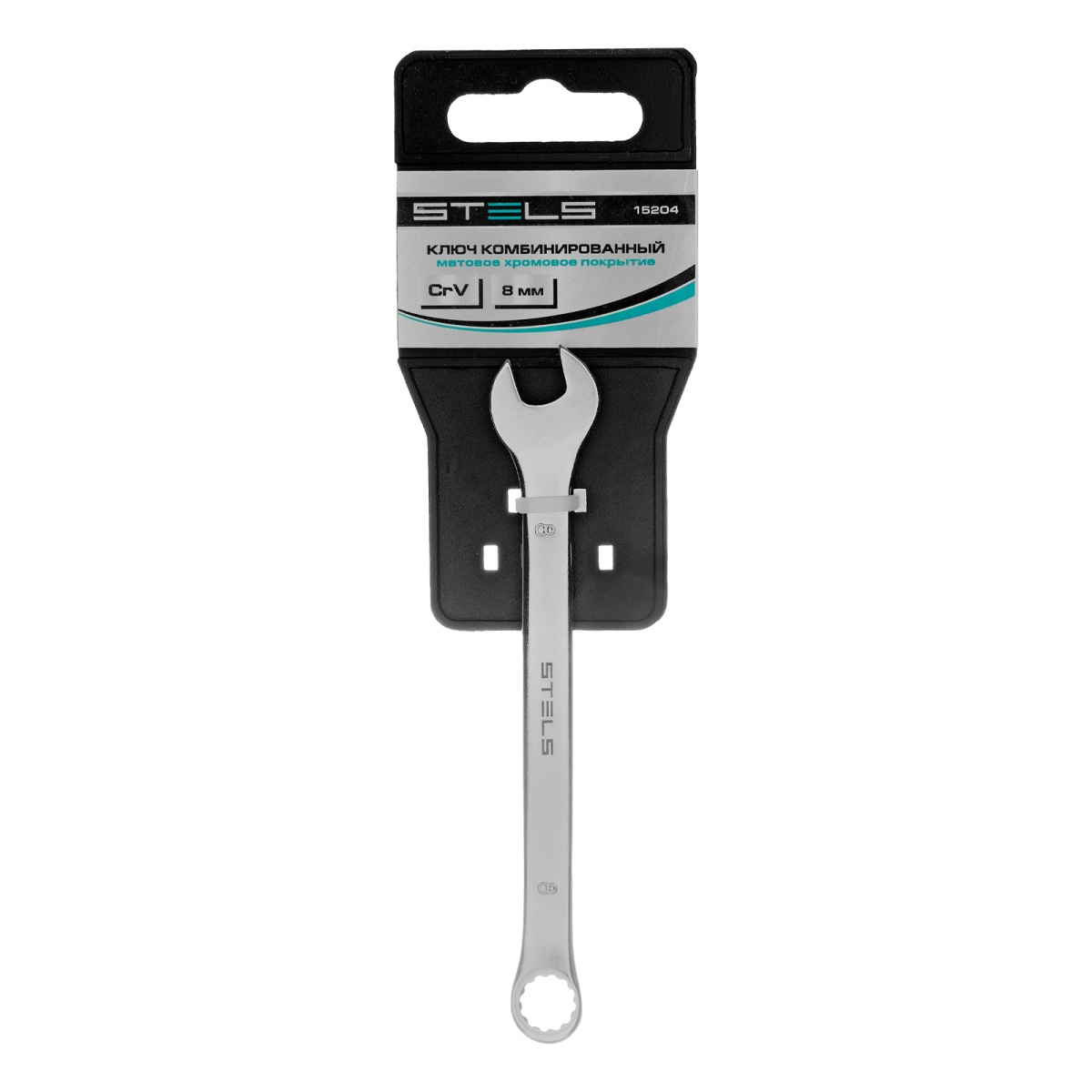 Ключ комбинированный, 8 мм, CrV, матовый хром Stels