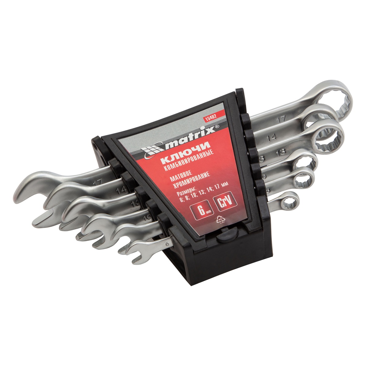 Купить Набор ключей комбинированных, 6-17 мм, 6 шт, CrV, матовый хром Matrix V4354 по лучшей цене с доставкой - интернет магазин №1 в России