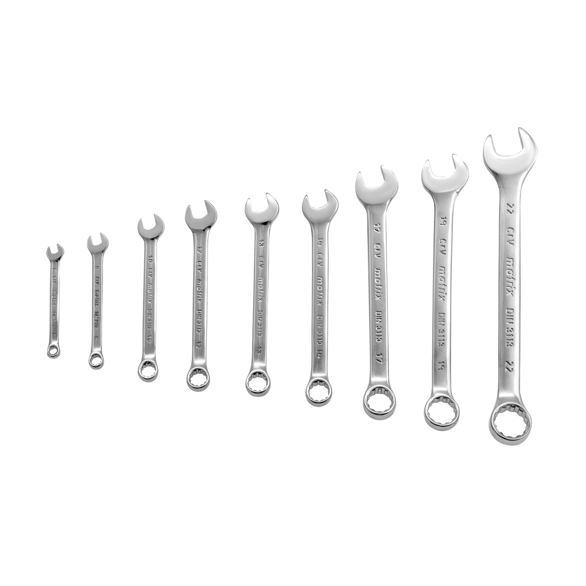 Набор ключей комбинированных, 6-22 мм, 9 шт, CrV, матовый хром Matrix