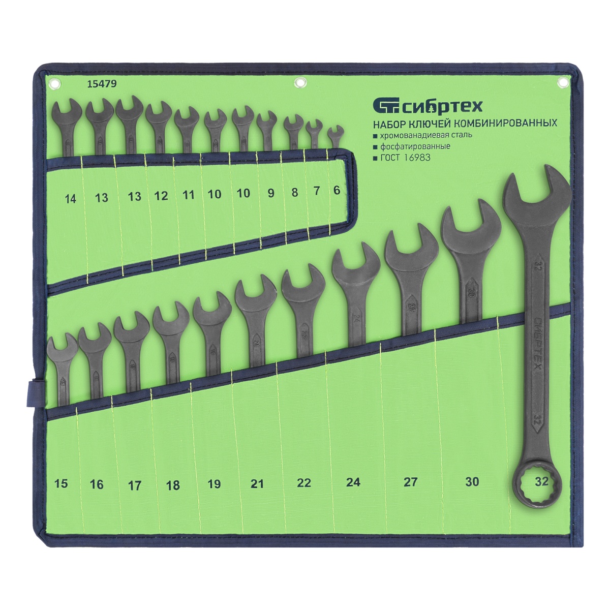 Купить Набор ключей комбинированных, 6 - 32 мм, 22 шт., CrV, фосфатированные Сибртех V4353 по лучшей цене с доставкой - интернет магазин №1 в России