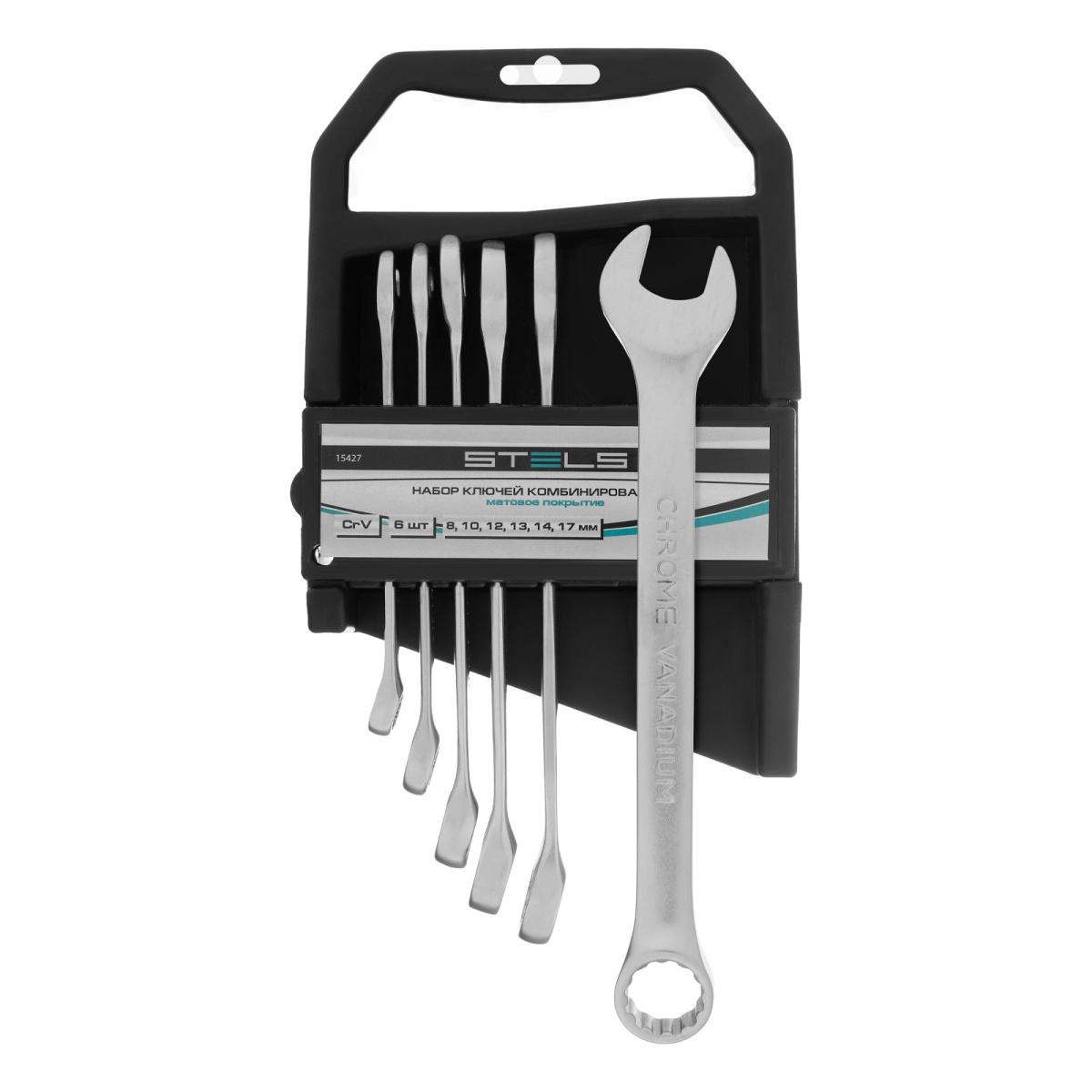 Купить Набор ключей комбинированных, 8-17 мм, 6 шт, CrV, матовый хром Stels V4369 по лучшей цене с доставкой - интернет магазин №1 в России