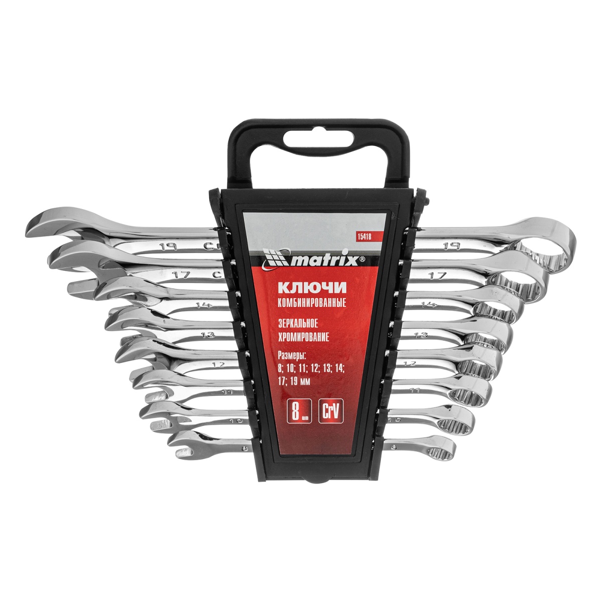 Купить Набор ключей комбинированных, 8-19 мм, 8 шт, CrV, полированный хром Matrix V4372 по лучшей цене с доставкой - интернет магазин №1 в России