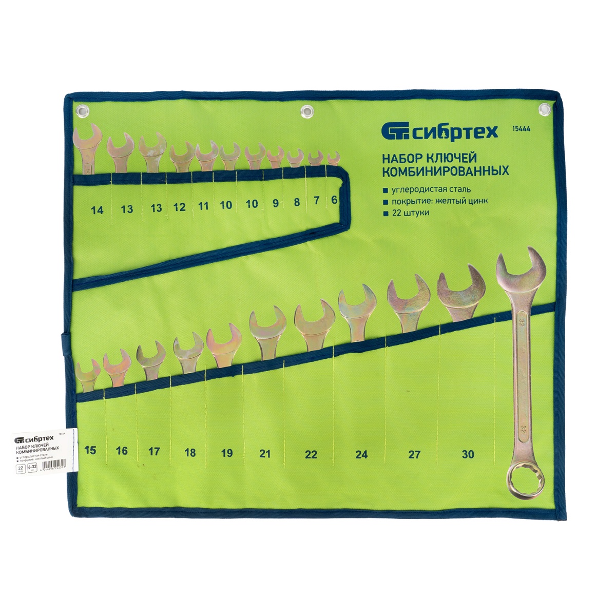 Купить Набор ключей комбинированный 6-32 мм, 22 шт, желтый цинк Сибртех V4327 по лучшей цене с доставкой - интернет магазин №1 в России