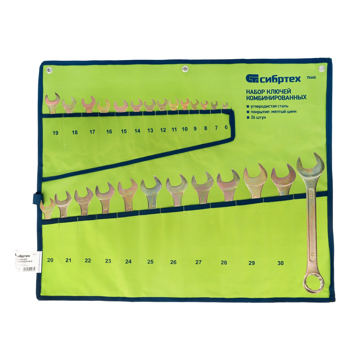 Купить Набор ключей комбинированный 6-32 мм, 26 шт, желтый цинк Сибртех V4328 по лучшей цене с доставкой - интернет магазин №1 в России
