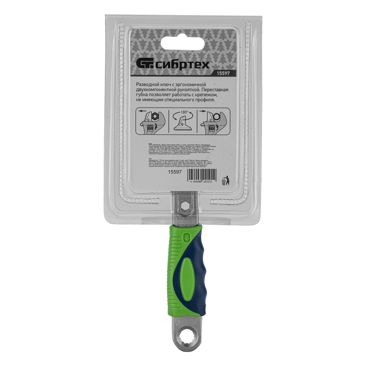 Ключ разводной, 150мм, переставная губка, 2-х комп. рукоятка Сибртех