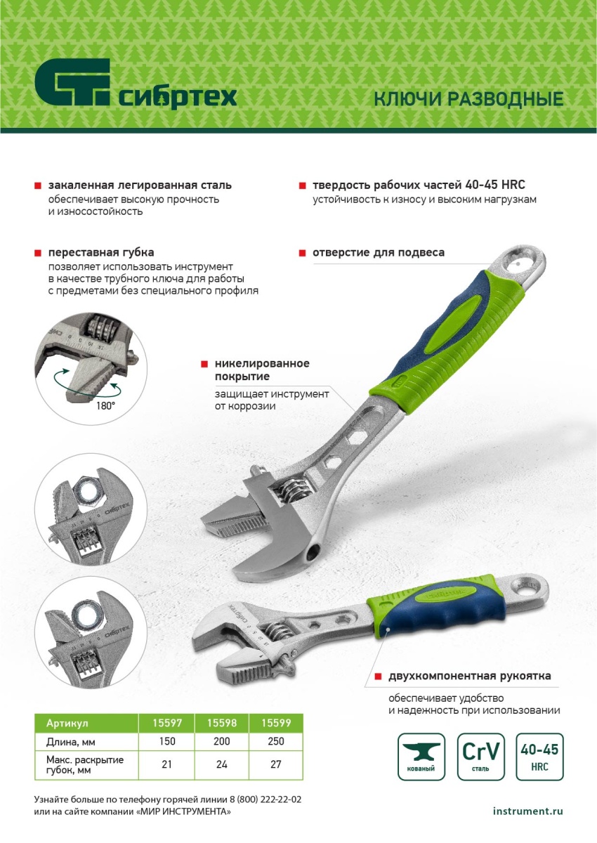Купить Ключ разводной, 150мм, переставная губка, 2-х комп. рукоятка Сибртех V2514 по лучшей цене с доставкой - интернет магазин №1 в России